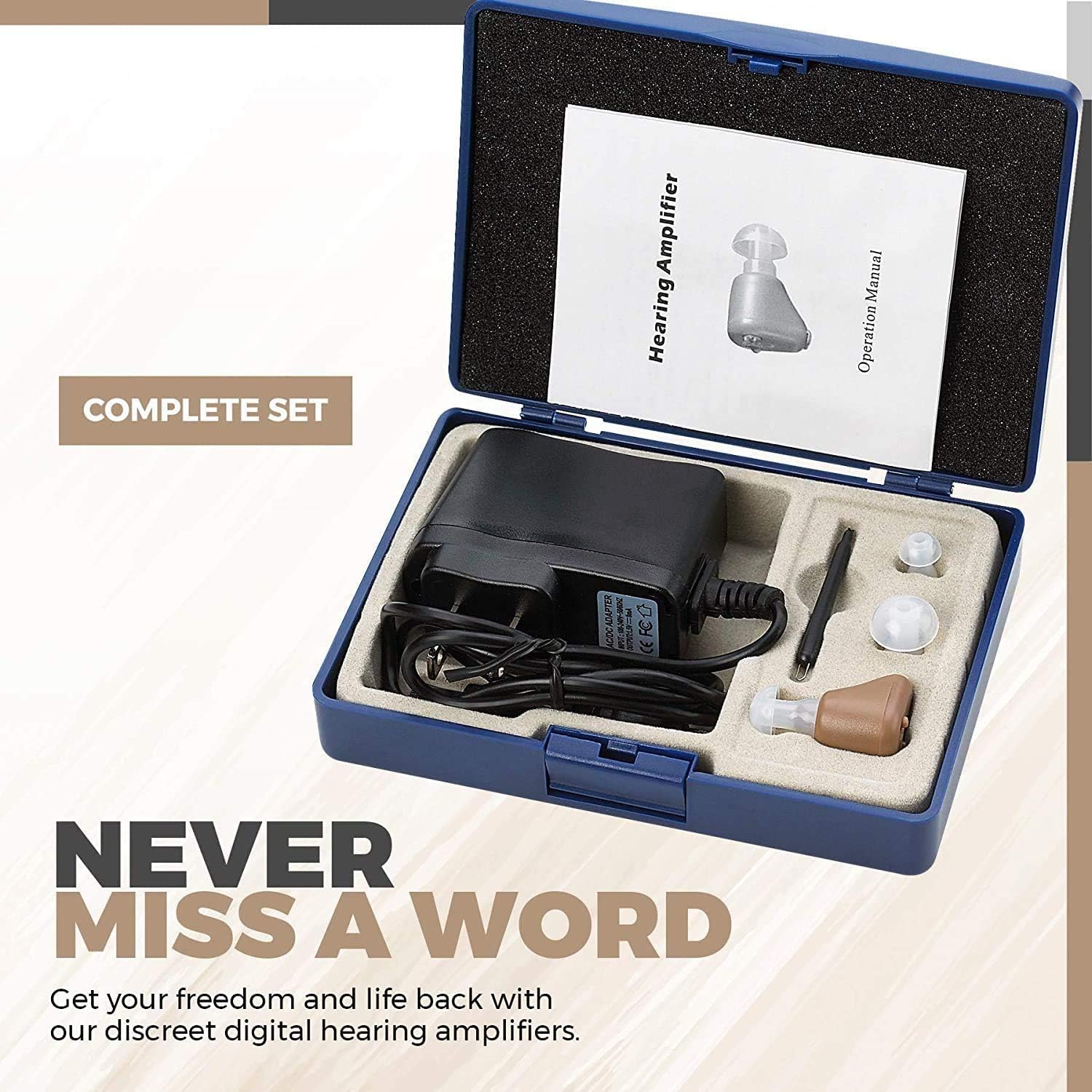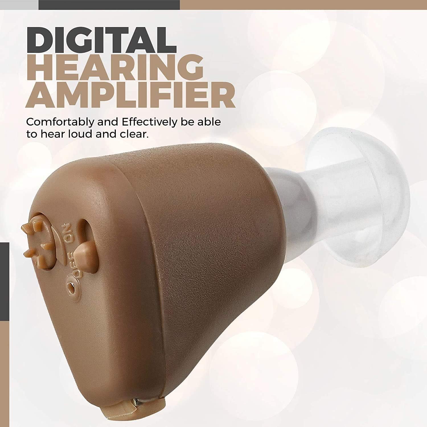 This is the same famous sound amplification device that has been nationally publicized on TV and in leading publications similar to those being sold in Europe for much, much more. High technology so small fits right in your ear. Don't be fooled by this devices size or appearance. It may look like a simple device just designed to hide just right in your ear, but it's actually a major breakthrough in sound interception and amplification technology. State of the art electronic engineering actually allows you to capture and amplify sounds you can hardly hear with your own ears! It works incredibly well that you literally won't believe your ears! a new world to super ears! Just imagine what would be like to hear sounds that you could never hear before with ordinary hearing. Studies show that there are thousands of different sounds that are not normally audible to the average person. Slip on this technologically advanced device and you'll instantly hear like a super hero. Incredibly, you'll be able to hear people talking in next room loudly and clearly! Take a walk outdoors and you'll hear birds sing like you never heard them sing beforehand hear a deer coming before they hear you, It's an outdoorsman's dream come true! Never miss a word - with over a dozen practical uses you can take it to the movies, theater, or lecture hall and you'll never miss a word. It's great for watching TV with a spouse- just keep the volume on low and turn on. She can read while you watch the ball game.