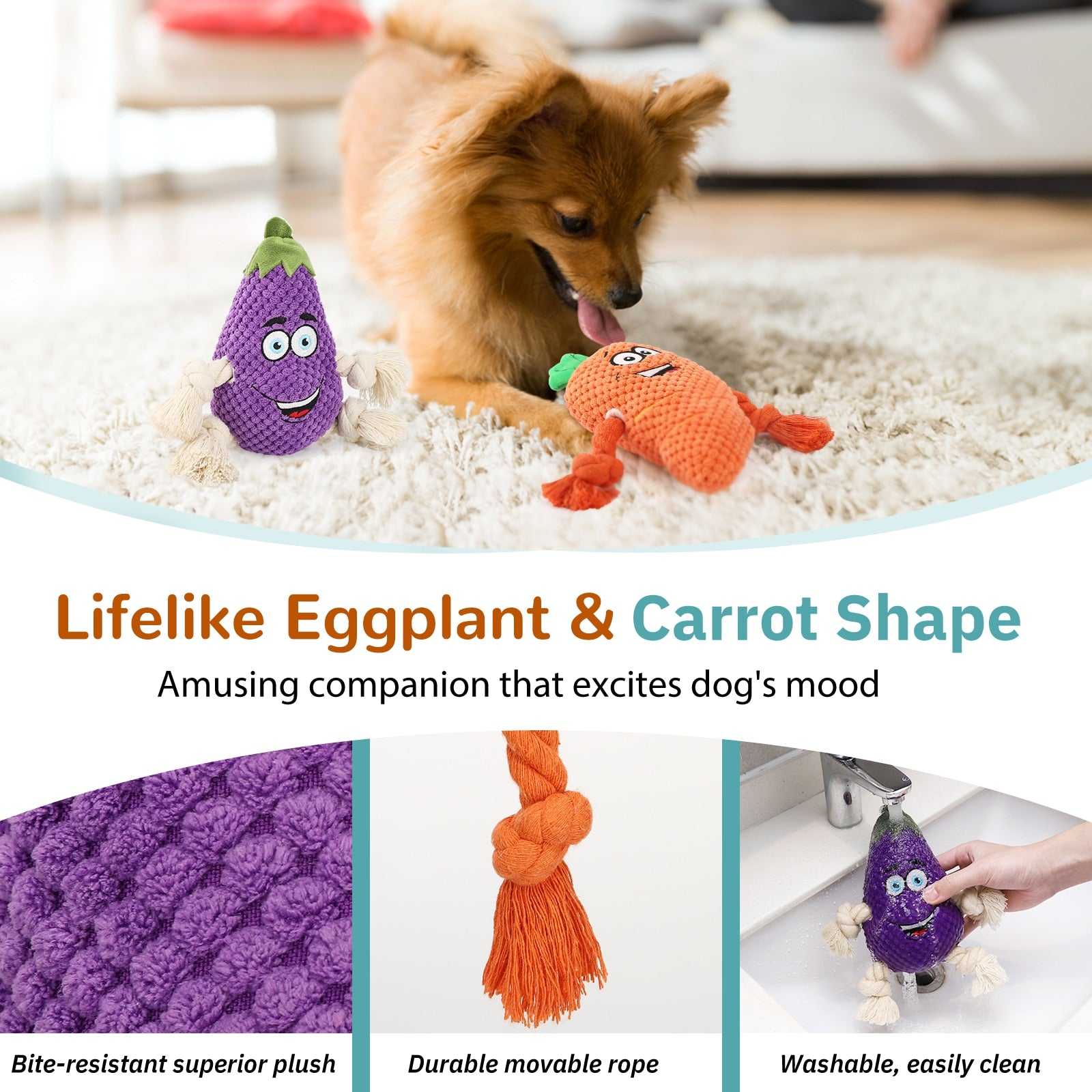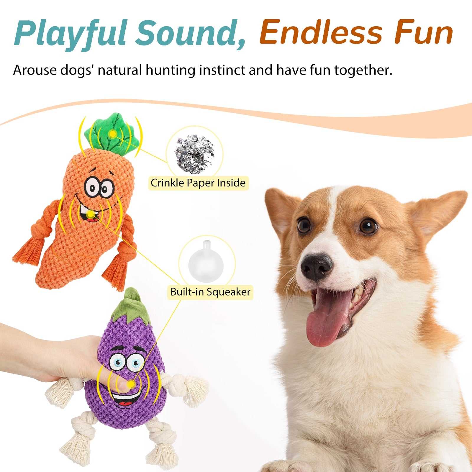 The squeak plush toys are very suitable for playing interactive grabbing games, play tug of wars, and add joy to your dog's life.