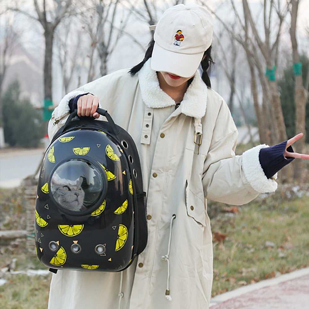 Many Styles Available: Lemon, flower color, letter, chicken, personalized pattern, large capacity, fashion, you will become the focus of crowd. The side of pet backpack has large ventilation holes to promote air circulation and keep pet cool and comfortable.