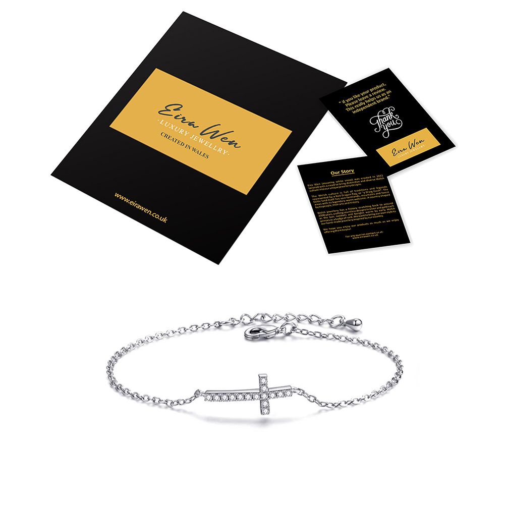 Title: Eira Wen Sterling Silver Plated Adjustable Pave Cross Charm Bracelet Encrusted with Swarovski Crystals