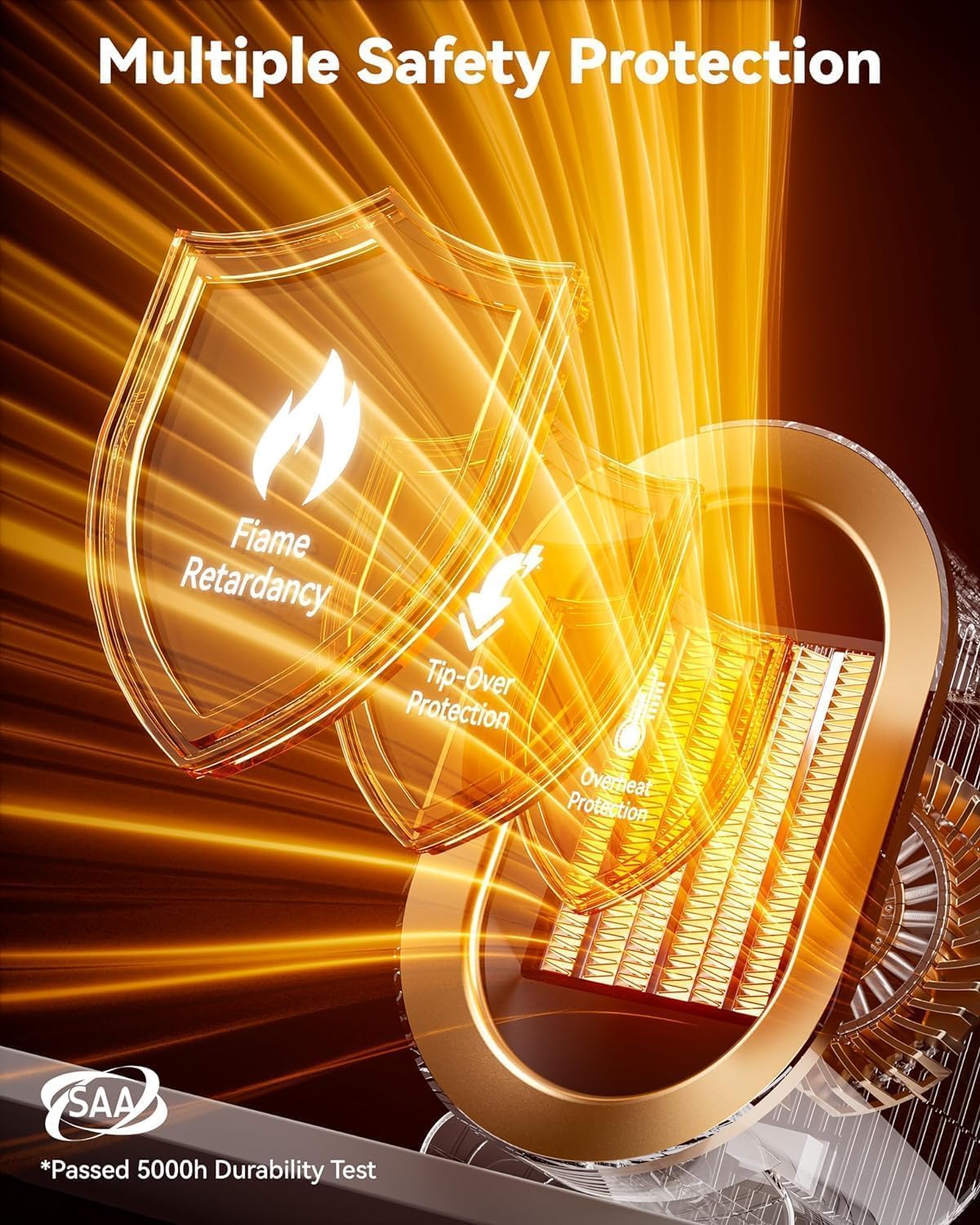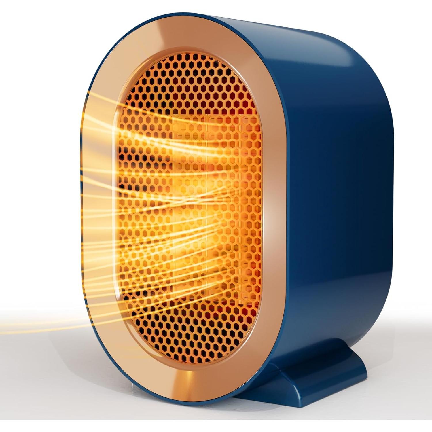 Energy Saving & High Efficiency - This is an energy-saving space heater for indoor use. The 1200W portable space heater has two different heating settings (low and high), three-second heating, and more even heat distribution. You don't have to spend a lot of money on central heating. Safety & Security - QQT ceramic heater is made of advanced PTC ceramic heating technology, upgraded ABS fireproof material, 45 dump protection, turns off the space heater when turned over (only when it is standing stably can it emit heat for you), insulating shell, and upgraded safety plug. It heats day and night, avoiding any fire hazards and protecting the safety of your family. Quiet & Occasion - The noise emitted by portable heaters for indoor use is less than 30 decibels. The purpose of this portable heater is to put your feet on the floor, put your hands near the table, or bring it indoors quiet enough for most people to use when sleeping in the bedroom. The cold winter will not affect your work and life at all, and you can sleep or work at ease. Comfortable and soft: It is a very comfortable space heater. The space heater heats more efficiently with a working power of up to 1200W, smoothes the airflow, eliminates air turbulence, provides soft and quiet warmth, and is easy to carry and move. It is very suitable for houses with children and pets. Exquisite appearance: The 8.2 x 5.9 x 5.5 inch personal heater adopts a compact shape design, which is very suitable for use in various places. The high temperature resistant air outlet prevents your hands from being burned. The transparent work indicator light can keep you informed of the working status of the heater at any time. The hidden handle can be easily lifted and placed anywhere. It is easy to carry and move. Our design has three colors (white/Blue/Green) Let your winter reject the cold! Attention: The QQT Plug in space heater is equipped with an anti-vibration protective cover during transportation. When receiving the product, be sure to remove the protective cover, otherwise it may cause the product to trip (overheat protection). Protection method: (Overheat protection) Blow cold air out of the product, turn off the product, let it stand for 10 minutes, and then restart. (45 Tilt Protection): If the product turns over or tilts, the space heater will automatically turn off the power, straighten up, and restart. 2 in 1 Heating and Cooling FanThe 2 in 1 portable small space heater for desktop adopts a heater and fan combo design, provides 2 different heating power modes: 500w and 1000w. No matter the weather or the change of seasons, this fan and heater combo product is always your good companion that will not be idle. Experience Even Heat DistributionOur portable heater with a 90-degree oscillation function ensures warmth in every corner of your room. Set the heat flow to your preference, directing it in a specific direction or enjoying wider coverage. Convenient Remote Control & TimerNo need to interrupt your activities to turn on the heater. Enter the convenience of remote control! Our electric heater can be activated from a distance using an infraRed remote control. Additionally, our room heater includes a timer function, allowing for automatic shut-off after 2/4/6/8 hours. This feature not only offers convenience, but also saves energy. Safety GuaranteeConstructed with flame-retardant ABS for the body and PTC ceramic for heating, our ceramic heater prioritizes safety, being explosion-proof and highly efficient in heating. Additionally, our small heater is designed to automatically shut off when tilted more than 30 degrees, Reducing the risk of tip-over accidents. Compact Size & Low NoiseSay no to cumbersome electric fans! At 125 x 125 x 215mm and 2.5lbs, ultra-compact but powerful. Is your old fan too noisy? Small size 2 in 1 electric fan and heater with only 40db and it will be a great choice for office and home use when working, reading, resting, watching TV or studying. Specially designed with a back carrying handle for moving indoors and placing this desk fan easily.