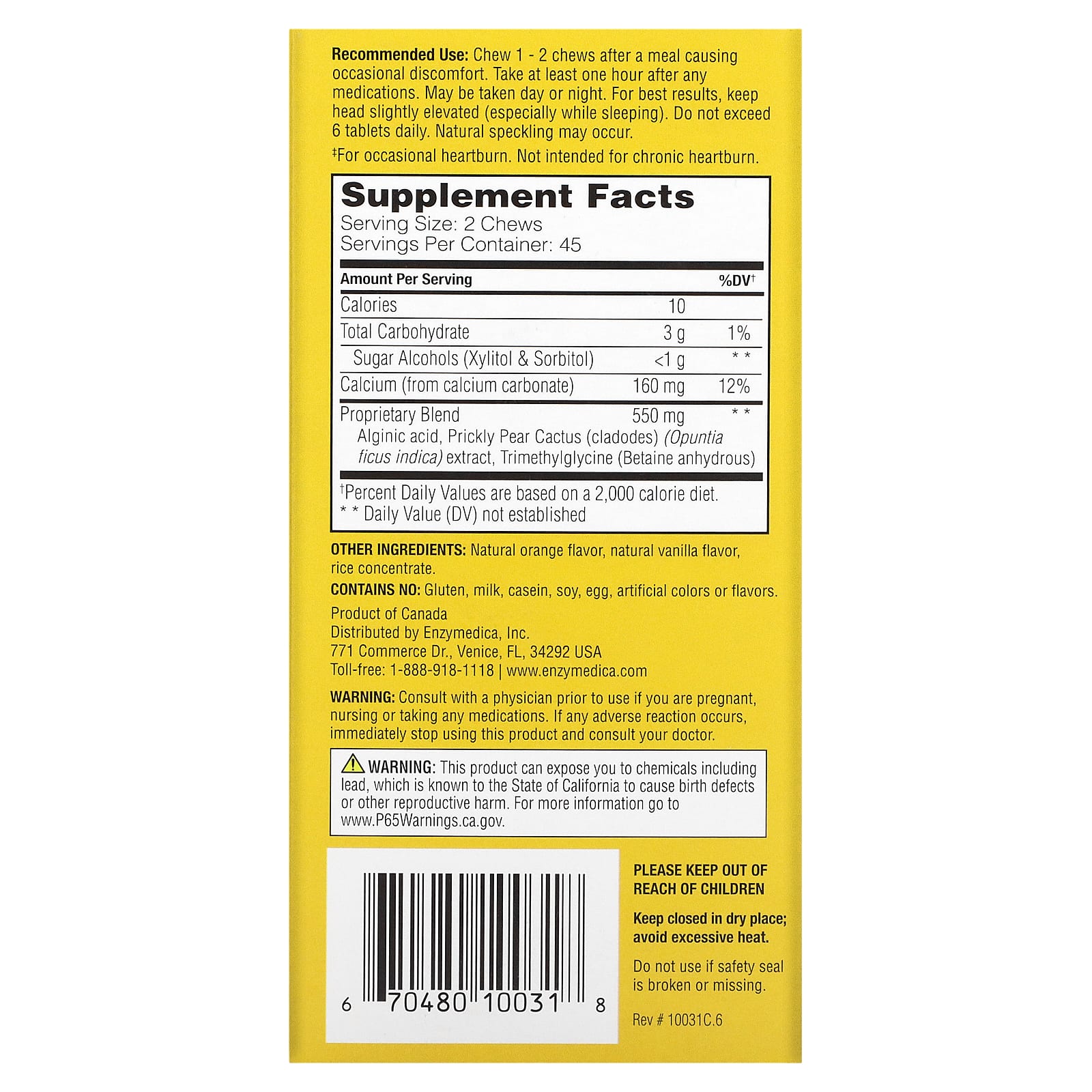 A key compound in Heartburn Soothe is Alginic Acid, which has been scientifically studied to provide immediate results to soothe occasional heartburn. Other fast-acting ingredients - Betaine and Calcium Carbonate - immediately reduce pH levels to comfortable ranges. For ultimate protection, Prickly Pear extract helps rebuild your overall digestive tract.