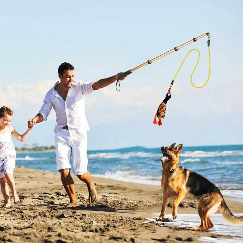 Enjoy sports and entertainment with your family and your dog with this flirt pole! It is not easy to break or deform, and it has a comfortable handle that allows you to easily control the pole. It is also compact and can take up little space when not in use. Your dog will love chasing the lure and getting exercise.