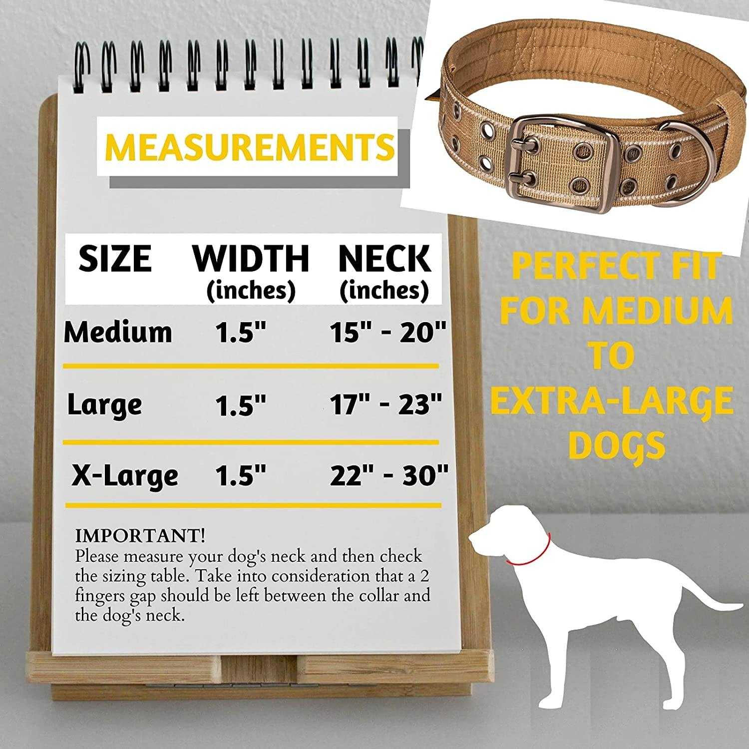 All-Purpose Dog Collar with Handle – Available in three sizes for puppies to senior dogs this tactical collar for dogs supports active pups from 55 lbs. to 150 lbs. which is ideal for German Shepherds, Labradors, Retrievers, Boxers, Huskies, and more.