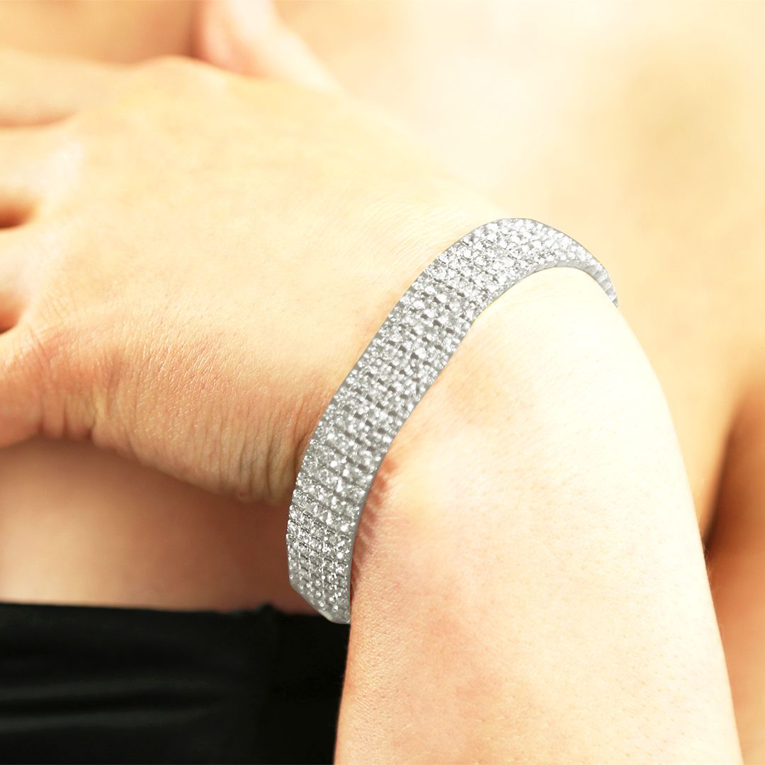 Pave 5 Row Bracelet with Swarovski Crystals in Silver, Yellow or Rose Gold