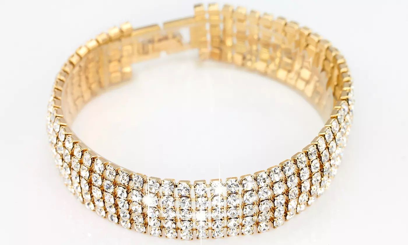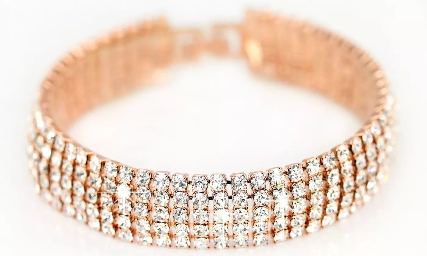 - This 5 Row Bracelet with Swarovski Crystals is a perfect gift and a timeless accessory for women who love the finer things in life.