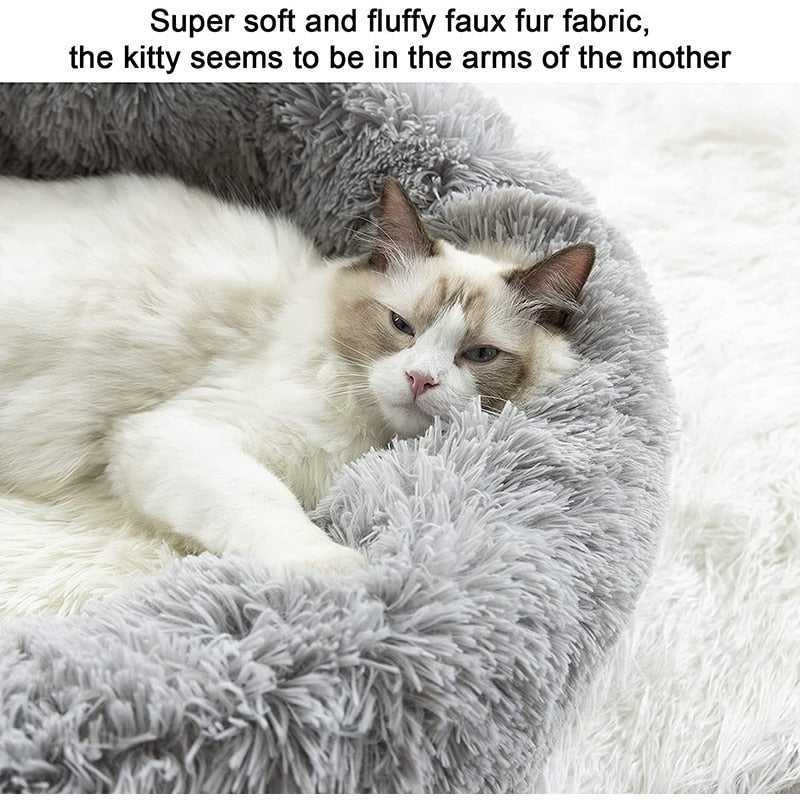 Supports Premium Sleep: Benefit by its long-soft fur and round raised rim shape, it can cuddler and support the pets well and give it the matrix feel, keep the pets lie or sleep in a comfy and calming state, keeping your pets have a sleep.
