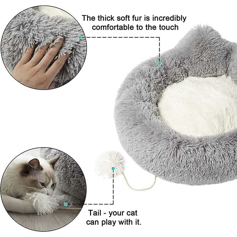 Unique Design: The rope tail can fix the cat bed to prevent it from sliding. Ear-shaped high back Plush design can make your dog and cat feel comfortable and warm. The shape of the ears makes the cat bed no longer ordinary, decorates the room, and gives people a warm and beautiful feeling.