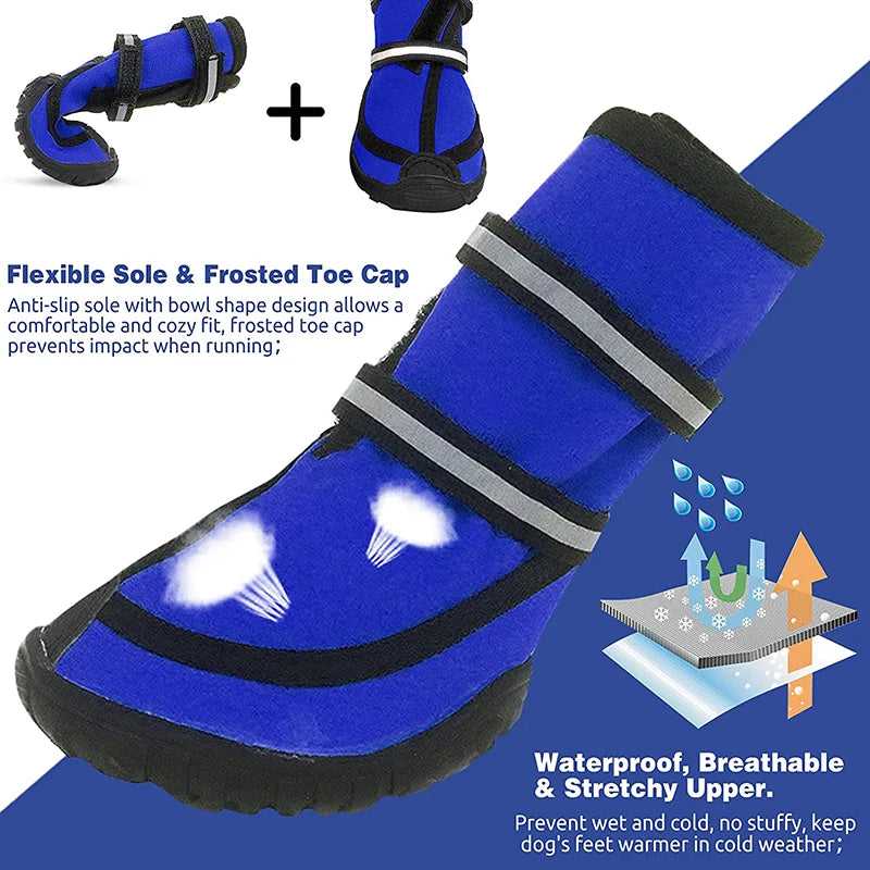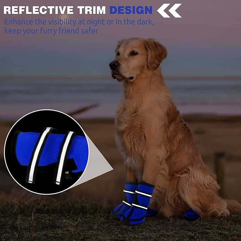 SAFE, REFLECTIVE BANDAGE, HAND-WASHABLE - Easy dress with touch-fasten, and reflective bandage. Offer stable visibility and maximum safety for your dog when night walking. Night Reflective band Design--Anti-falling stickers have strong adhesion and are not easy to fall off. It will emit light at night to prevent your pet from getting lost. Protects paws from hot pavement, sharp rocks, broken glass, burrs, ice, snow, salt, and many other elements that can be hazardous to your dog's paws.