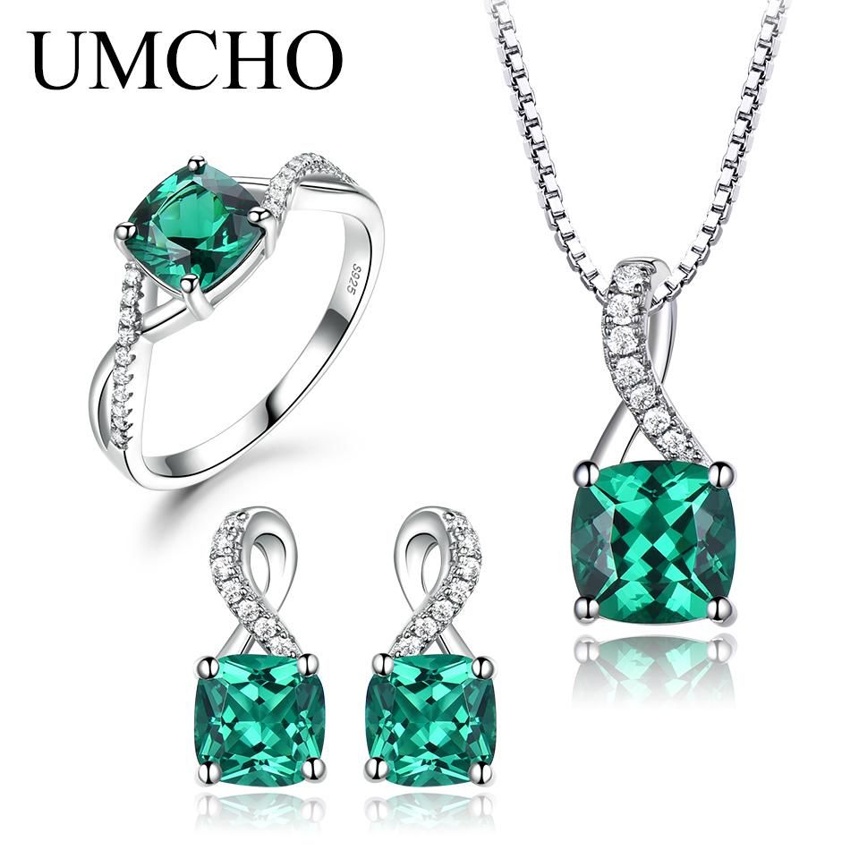 Brand Name: UmchoMetals Type: SilverMetal Stamp: 925,SterlingMain Stone: EmeraldModel Number: S027E-1Shape\pattern: GeometricSide Stone: Natrual materialGender: WomenItem Type: Jewelry SetsJewelry Sets Type: Ring/Necklace/EaringsOccasion: WeddingOccasion: Wedding / Engagement / Anniversary / PartyGift: Birthday Gift/Mother's Day Gift/Valentine's GiftStyle: Rendy,Elegant,UniqueMetal Type: 925 Sterling SilverMain Stone: Nano EmeraldChain Length:40+5cmRing SizeUS Size 06(Dia.): 16.5mm/0.65"" (Approx.)US Size 07(Dia.): 17.3mm/0.68"" (Approx.)US Size 08(Dia.): 18.1mm/0.71"" (Approx.)US Size 09(Dia.): 19.0mm/0.74"" (Approx.)Package included:1pc Jewelry Set1pc Exquisite BoxUmcho Guarantee:We promise that Every piece is handmade and all materials are hand picked and meticulously quality controlled. We are perfectionists when it comes to the quality of your jewelry.All of our gemstones and diamonds are genuine.They are all Authentic Natural Materials.Everything we use is carefully hand selected and ethically sourced.Our jewelry is handcrafted by the same jewelers as luxury brands, but sold at a fraction of the price. We avoid traditional 10x mark-ups by being online based and having a direct-to-consumer business model.