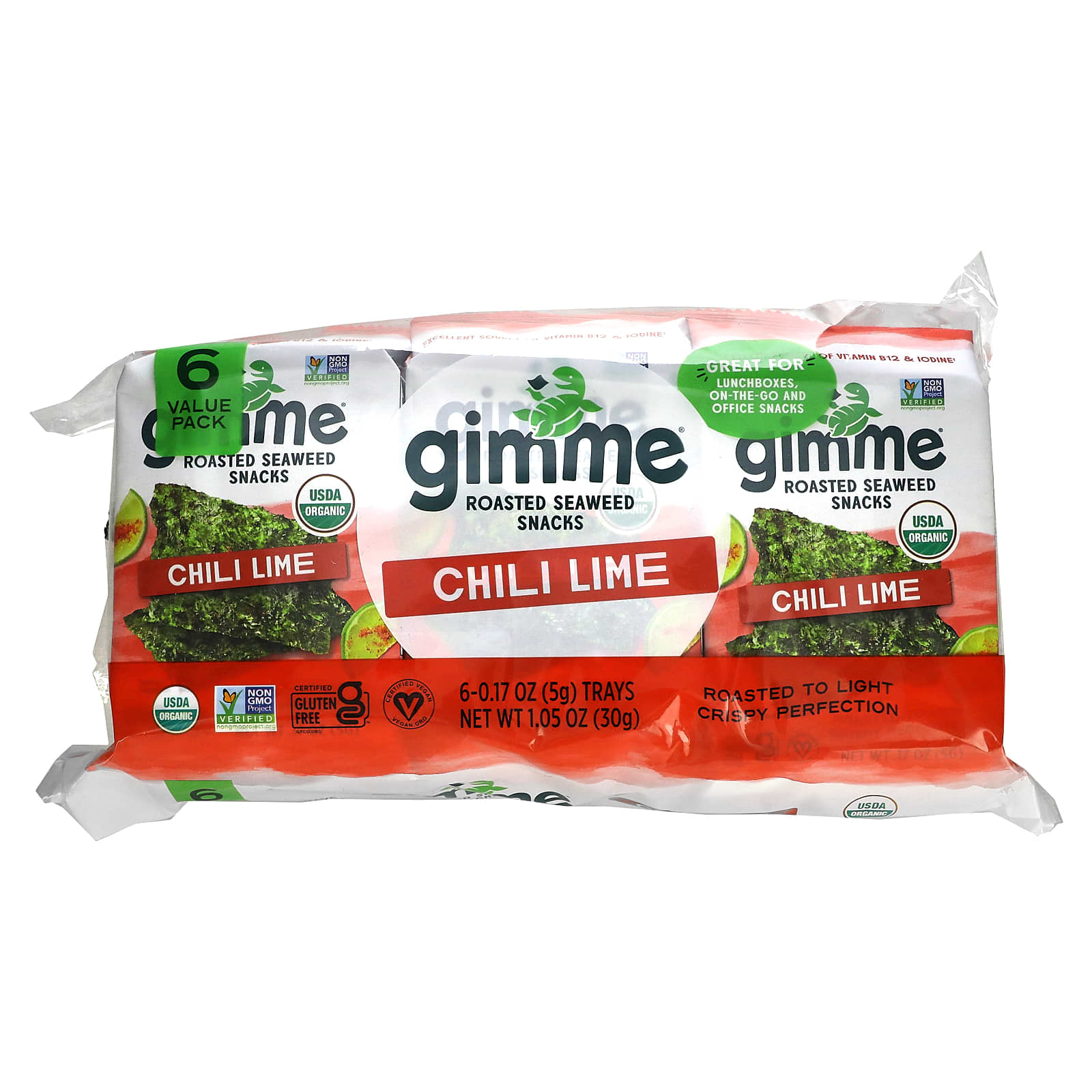Just the right balance of spicy but not too hot chile and tangy lime. We start with our premium organic seaweed, roast it to a crispy perfection with organic sunflower oil, and add just the right mix of seasoning for a delicious spicy, citrusy finish.