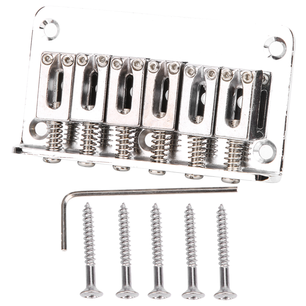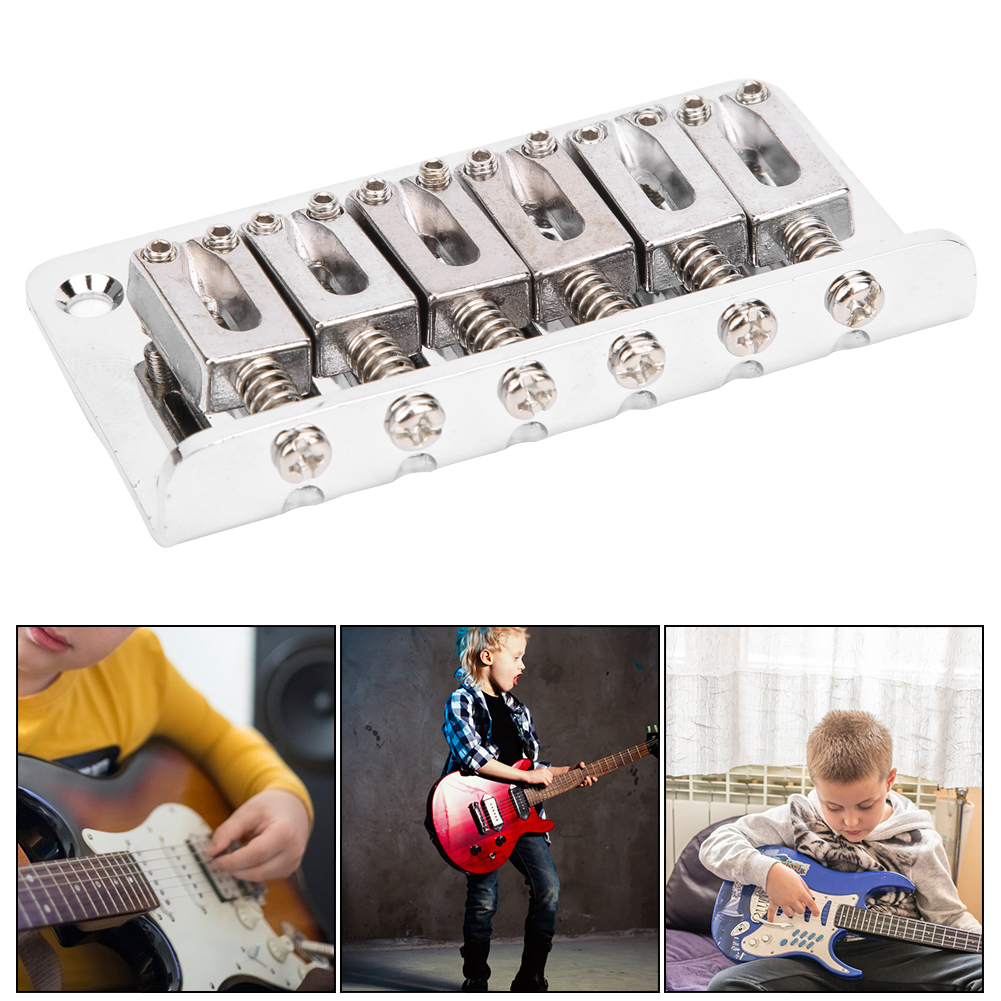 1Guitar bridge can bring you beautiful and excellent sound, which keeps wide application. 2With excellent workmanship, electric guitar bridge can perfectly replace the old or damaged. 3Standard structure helps such guitar bridge be applied to the main body of electric guitar. 4Excellent accessories for children's electric guitars, essential for playing and practicing. 5Made of high‑quality metal materials, durable guitar bridge is not easy to damage, you can use for a long time.