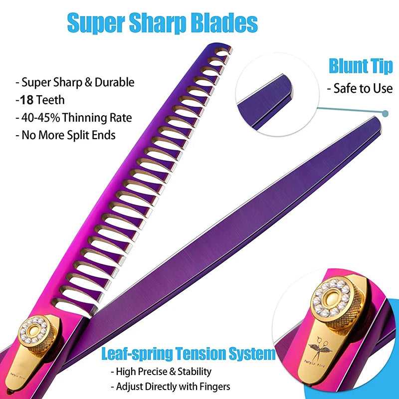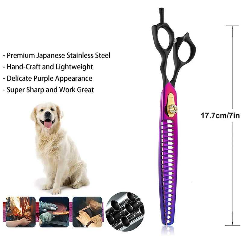MULTIFUNCTIONAL - 17.7cm/ 7-inch scissor the pet chunker scissors are ideal for pet hospital, pet salon, and family to use on dogs, cats, and so on. You can become a professional pet beautician at home, saving time and money. The dog chunker shear is also definitely the perfect gift for relatives and friends, especially for dog or cat lovers.