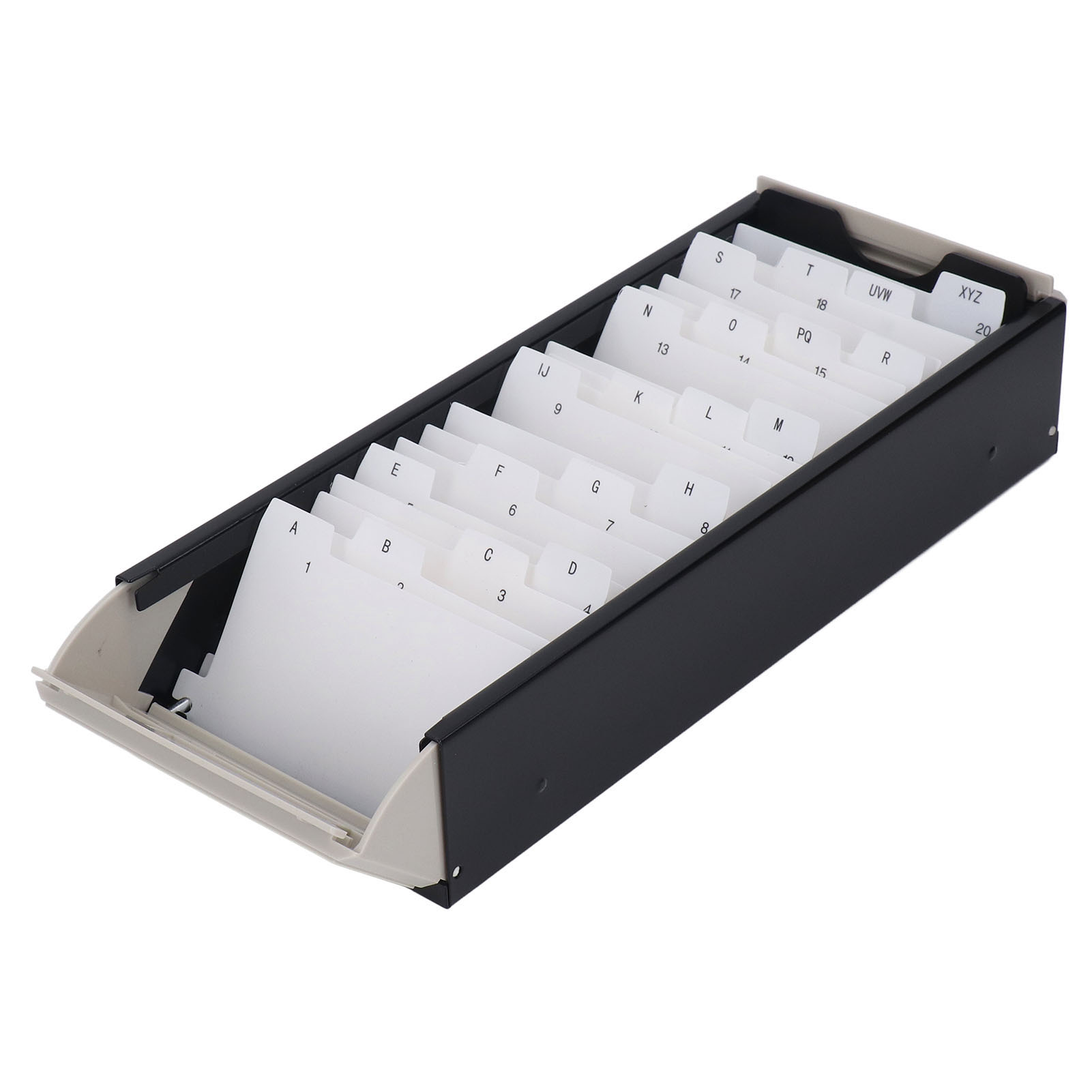 1800 Business Cards: The Index card box can accommodate 800 business cards, and the first letter index of A to Z is easy to find by classification. 2Transparent Plastic: Engineering grade transparent plastic, the internal business card storage is clear at a glance, and the sliding convenience makes business card management easier and faster. 3Increase Internal Space: Increase the internal space, easily store business cards of various sizes, and provide a comfortable office environment, away from clutter. 4Extendable: Both ends can be extended, easy to expand the space for easy search, and it is convenient to store more things. 5Iron and Plastic: The Index card box is made of iron and plastic, which is sturdy and durable, with clear printing, strong, non deformable, and long service life.