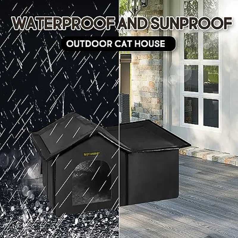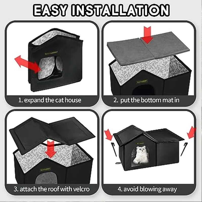 It is upgraded and installed, will be fully waterproof and will keep the pets or the neighbour stray warm and dry when they are sleeping and relaxing. The cat houses condos are extremely comfortable, and will provide the cat with a strong sense of security, which side opening gives cats a private space.