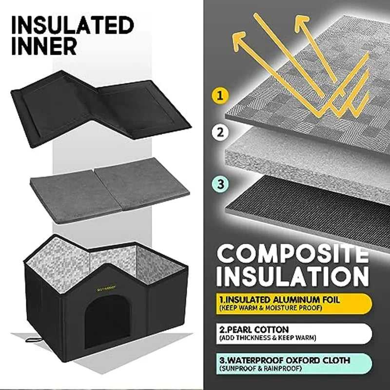 The stary cat shelter has four layers of material will keep our pets warm all seasons. The inner layer of waterproof non-woven fabric prevents pet accidents. The thick high-density foam is compounded with insulation inside, which can retain heat while maintaining its shape. And a soft bottom mat will help the cat to enjoy the most comfortable sleep.