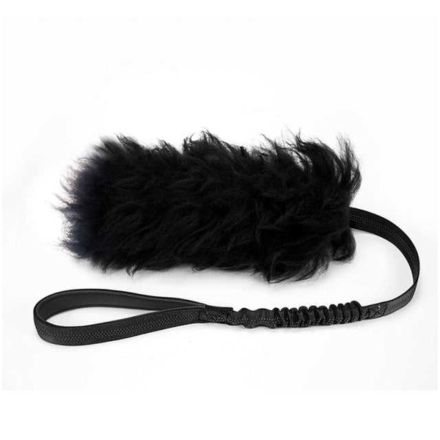 The sheepskin agility tug is not only an excellent reward but it's also perfect for teaching striking ,gripping and tugging. The soft handle is padded with waterproof fabric loop for easy gripping. The real sheepskin heightens your dog's teeth.The bungee chaser toy available two versions that with or without added benefit of a rubber ball at the end.