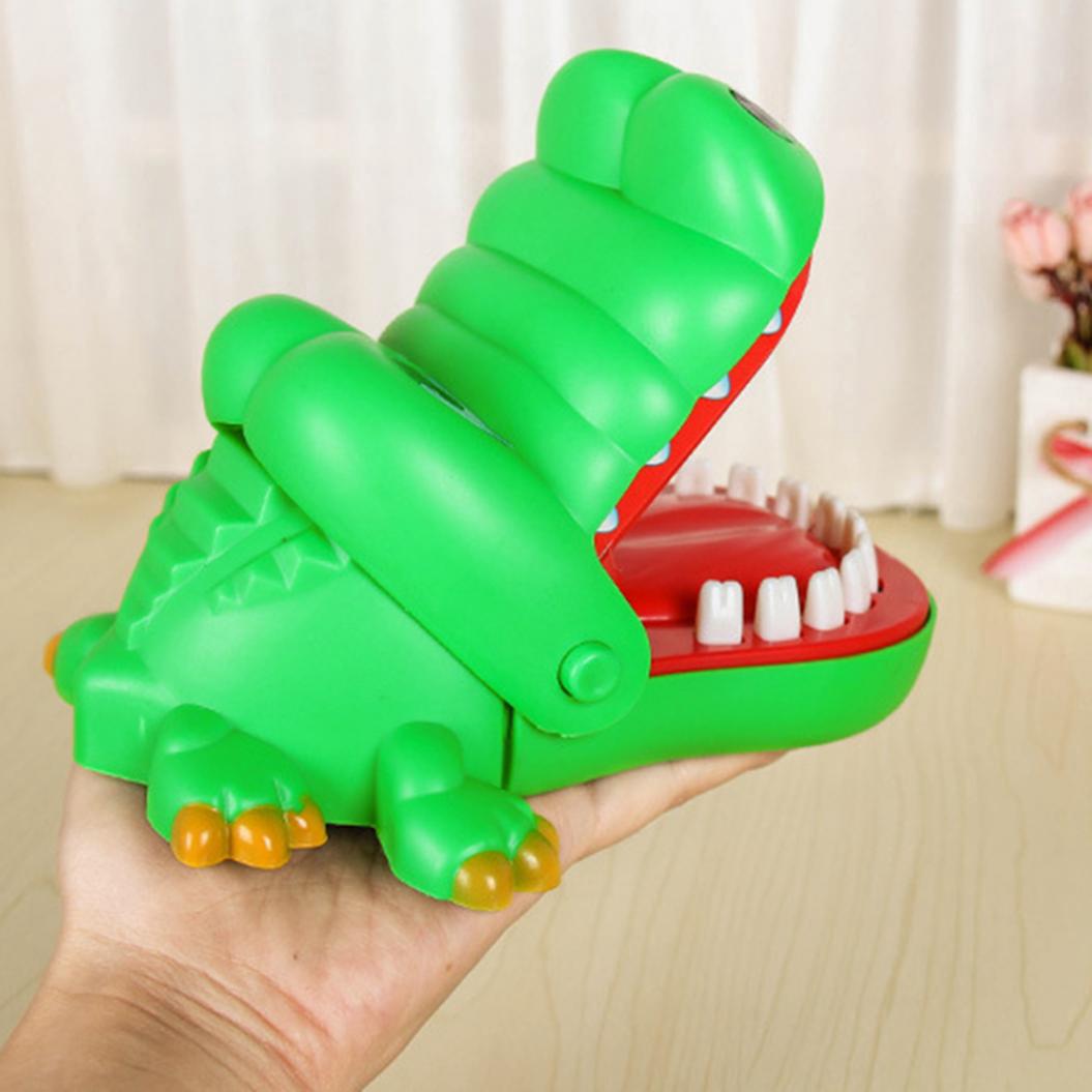 Specifications:A funny toy for both kids and adults.Green body with big eyes, long teeth and big mouth, very vivid design.You can play with your family, friends and classmates.The crocodile will bite you forcefully if your touch his sore tooth.Open the crocodile's mouth and press one tooth at a time to see how long you can survive.No batteries required.Type: Crocodile ToyMaterial: PlasticFeatures: Crocodile Shape, Bite Finger Toy, Interactive Toy, Funny ToySize: 15cm x 11cm x 9cm/5.91" x 4.33" x 3.54" (Approx.) Notes:Due to the light and screen setting difference, the item's color may be slightly different from the pictures.Please allow slight dimension difference due to different manual measurement. Package Includes:1 x Crocodile Toy
