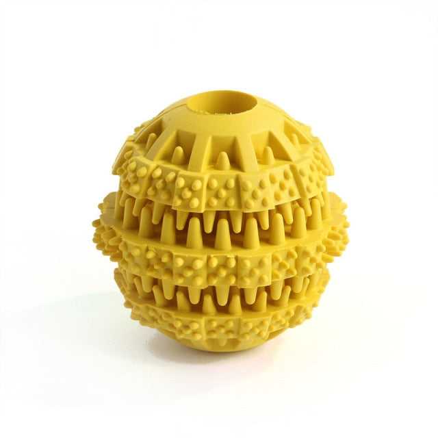 Put in some of your pet's favorite snacks and the dog will be attracted by the tooth cleaning ball.