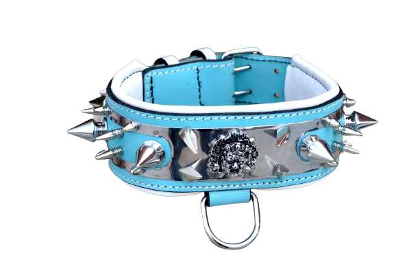 Sturdy dog collars made of soft microfiber leather and punk spikes; good sized D-ring which fits perfectly with almost all dog leashes,name tag and rings.