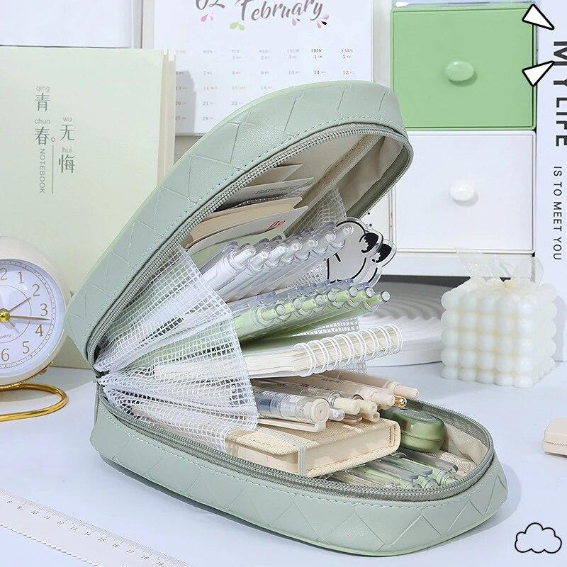 Large Capacity Leather Pencil Case