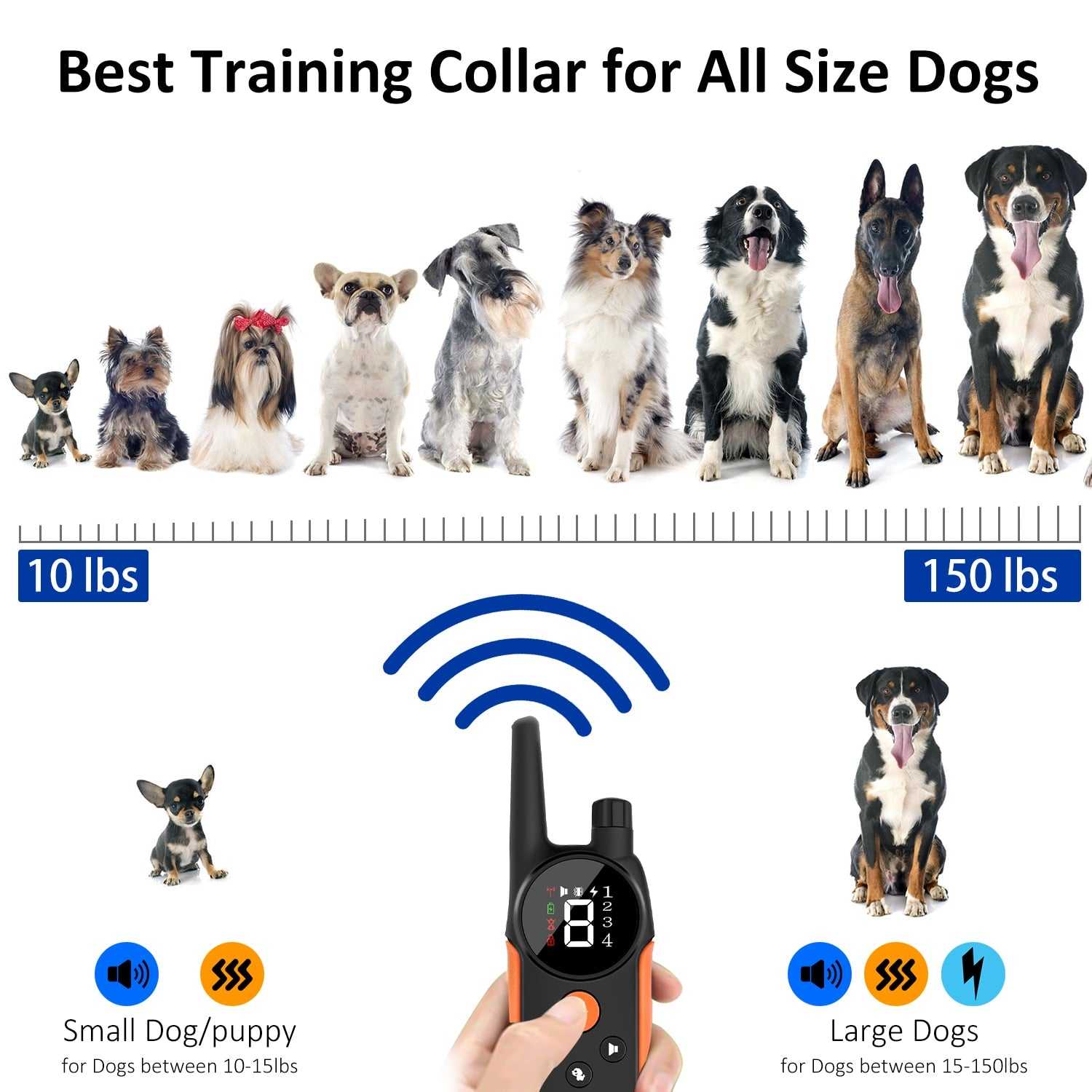 3 TRAINING MODES TRAINING COLLAR - Electronic Dog Training Collar provides 3 extremely efficient and safe training modes (beep, vibration and shock modes) for you to teach a dog basic obedience commands and solve an uncontrollable dog's behavior problems.