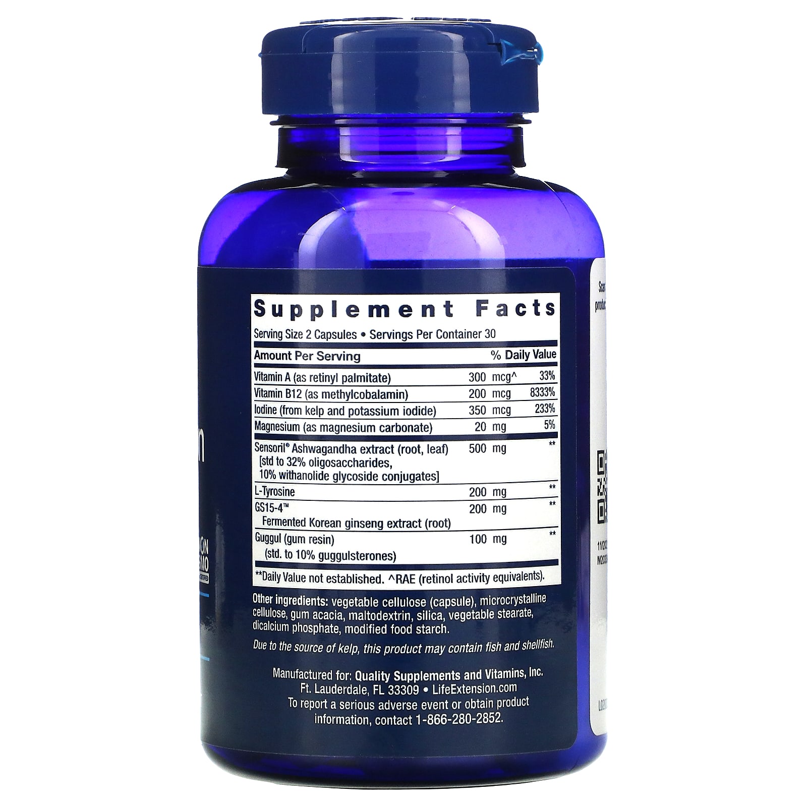 Vegetable cellulose (capsule), microcrystalline cellulose, gum acacia, maltodextrin, silica, vegetable stearate, dicalcium phosphate, modified food starch.