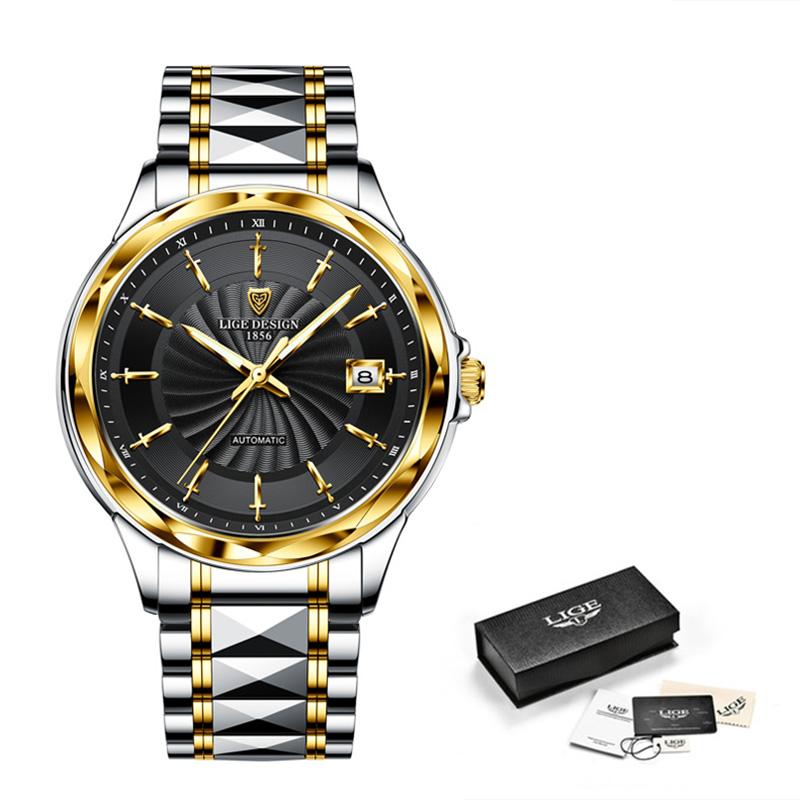 Dear friend,Stylish design, , !Style: Fashion, Casual, Business, Luxury, SportCaseDiameter:42mmCasethickness:11.5mmBandwidth:21mmTotalLength:22cmCase material: stainless steelStrap material: Tungsten Steemirror glass: sapphire crystalFeature:Mechanical movement: It uses a high-end mechanical movement, does not require a battery to keep the movement of the pointer, and increases the power of the watch according to the shaking of the watch. (walking, basic activities of the wrist, etc.)Waterproof Watch:64Ft / 50M water resist. Please DONOT press any buttons under water, and in case of damaging waterproof ring, please keep it away from steam and hot water.Band and case: electroplated case,Do Not Fade.High hardness mineral glass can effectively prevent wear,Durable full steel case and Band provide you comfortable wearing experience.Perfect Gift:This luxury watch combines the matching needs of formal or casual occasions, and you can match any clothing without pressure.This classic men watch is a perfect gift choice such as birthdays, anniversaries, business gifts, graduation gifts,Valentines Day, Christmas Day, sgiving Day, Fathers Day, etc.Packagecontains1xUserManual1xWipingcloth1xOriginalWatch1xBlackBrandWatchBox---------------------------------------------------------------------------------------------------------Special instructions:1.The fully automatic mechanical watch relies on the movement of the arm and automatic winding, so it must be worn for more than 8 hours a day to ensure timely and accurate. Part of the automatic mechanical watch on the chain can also be manually added to the chain to replenish energy, the method is to rotate 15 times clockwise without pulling out the button. It is not the automatic chain on manual and automatic mechanical watches, and cannot be supplied by the energy on the manual chain.2.Swimming, and diving within the waterproof depth! If there is only a small amount of water vapor in the watch, the water vapor will disappear automatically with the passage of time, or put the watch upside down on your wrist. After two hours, the water vapor will disappear automatically.3.The mechanical watch should be far away from TV sets, computers and other objects with magnetic fields, so as not to affect the work of the watch.