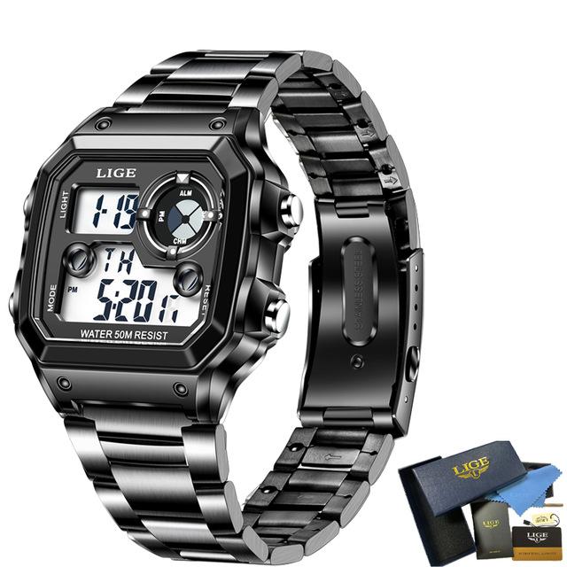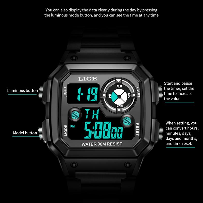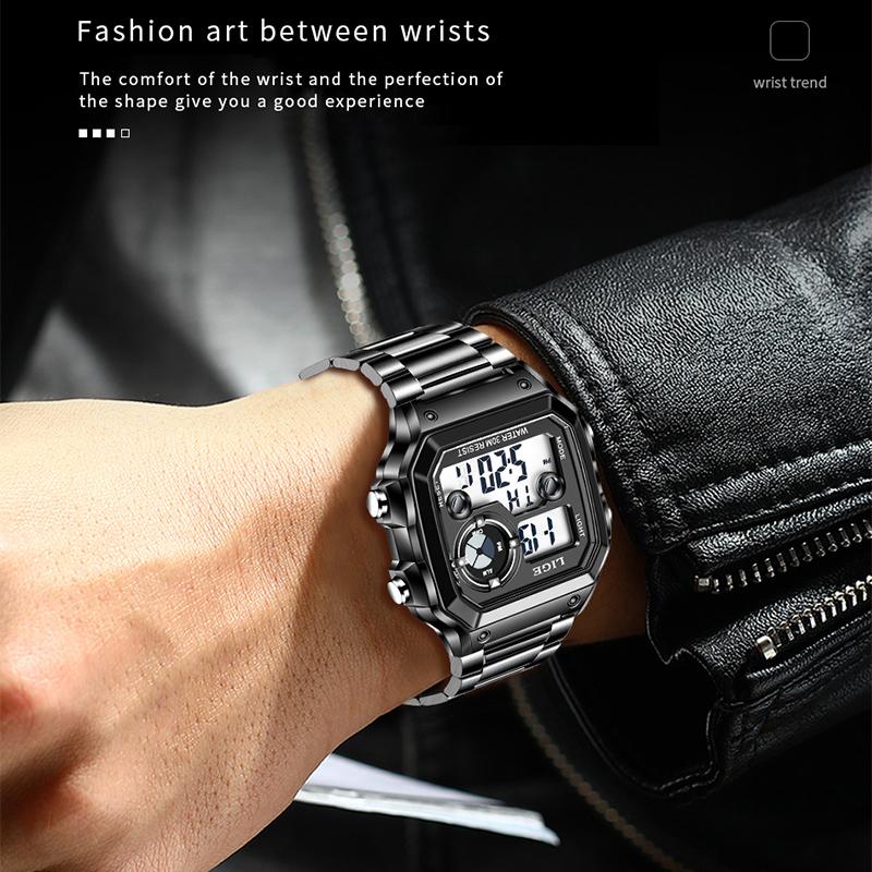 Product New With Tag And ;- Top Brand Luxury Design Dial- Model: LG8921Specifications (estimated):CaseDiameter:40mmCasethickness:12mmBandwidth:23mmTotalLength:23cmBand Material Type:Stainless steelCase Material:Stainless steelFeatures:Dual Display LED Electronic Watch: The data is clearly displayed by pressing the luminous mode button, and you can see the time at any time.Material of the elegant digital watch: durable and rust-resistant steel banddont worry about the watch will fade.Analog Quartz Movement watch:Japanese Original quartz movement provide accurate time keeping.Water resistance: 50m (5ATM) water resistant suitable for everyday use. Hand washing, rain, sweating, cold showers no problem, but not suitable for diving, swimming.Multifunction: stopwatch, calendar,luminous,waterproofand shock resistant. A wonderful gift to your family, friends and yourself.Package contains:1 x User Manual1 x Wiping cloth1 x Original Watch1 x Black Brand Watch Box