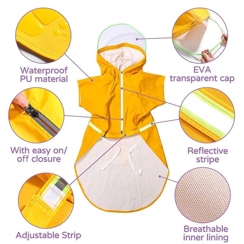 [ Reflective & Adjustable Strip ] Highly adjustable belly strap of raincoat and leg straps make the raincoat fit the dog better, a reflective stripe on the back to ensure your pets can be seen at night/in the dark.