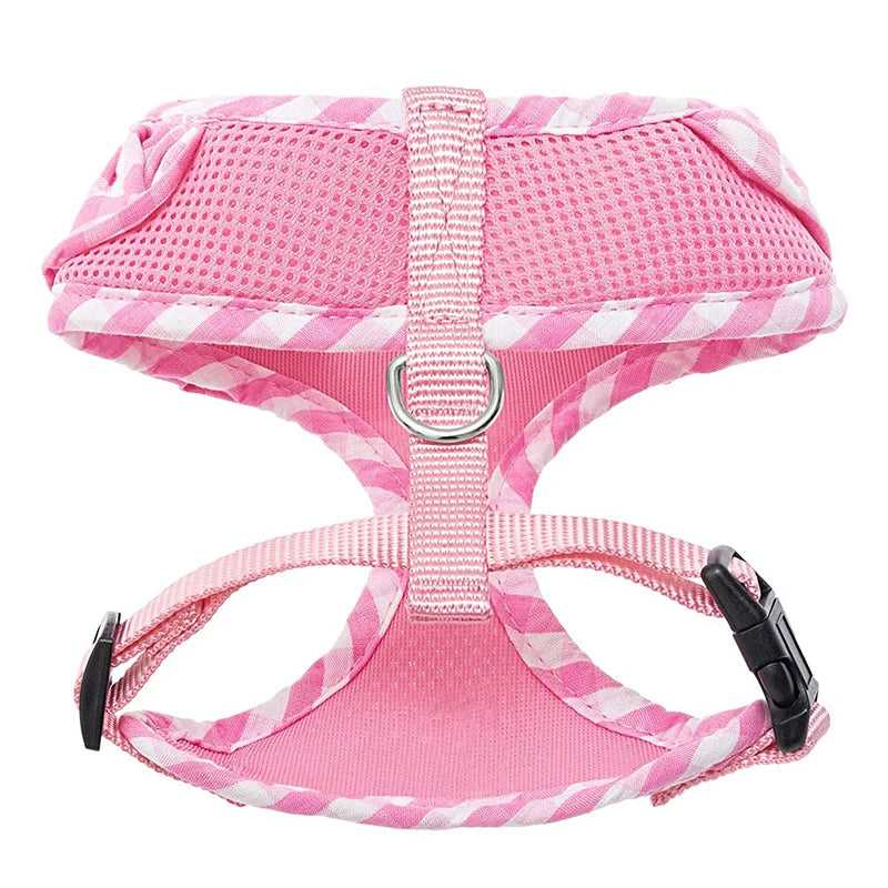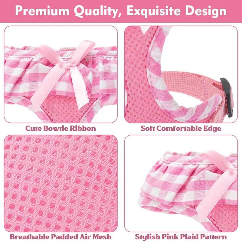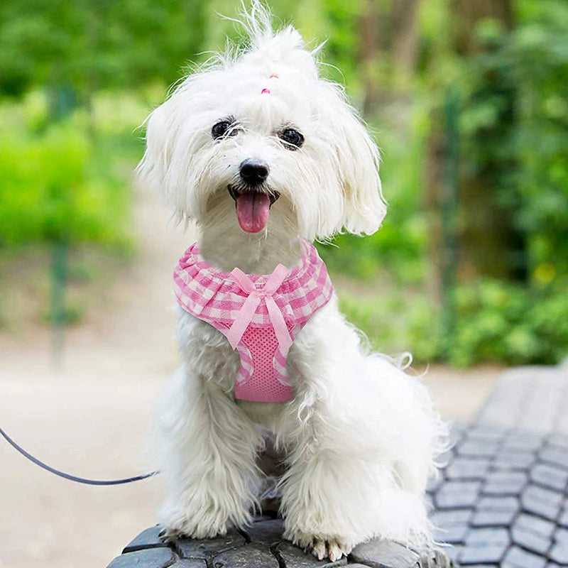 DESIGN: The checkered pattern around the neck, and the additional ribbon, all the decorations make the dog harness adorable and fashionable for girl dogs.