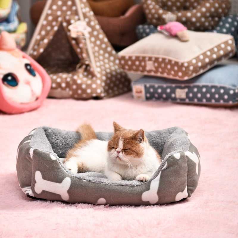 Beige dog bed with anatomic design with high and comfortable rim for pets to rest their head
