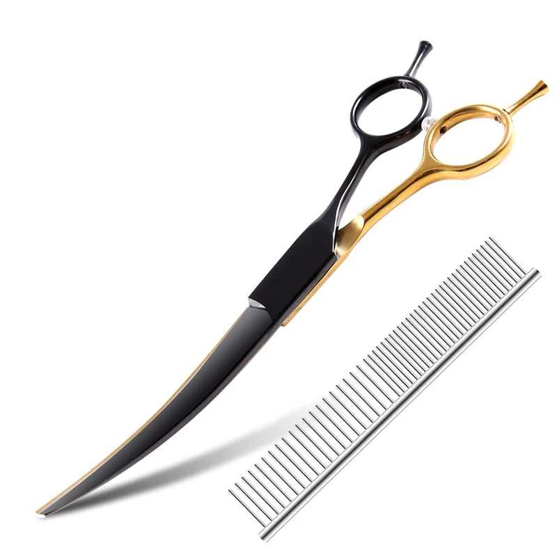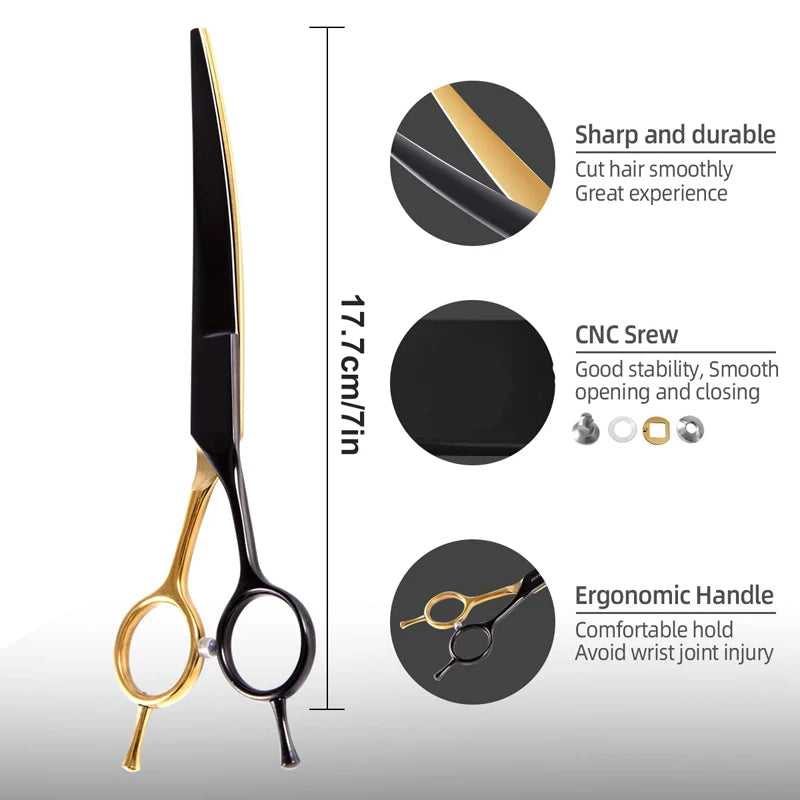 [7-inch Curved grooming scissors for dogs, used in multiple scenes] Suitable for facial and head grooming of small, medium and large dogs, the concave surface can be cut up to make a beautiful arc. The convex face up can trim the long hair on the dog's back, legs, and buttocks. Perfect for pet owners and pet groomers students.