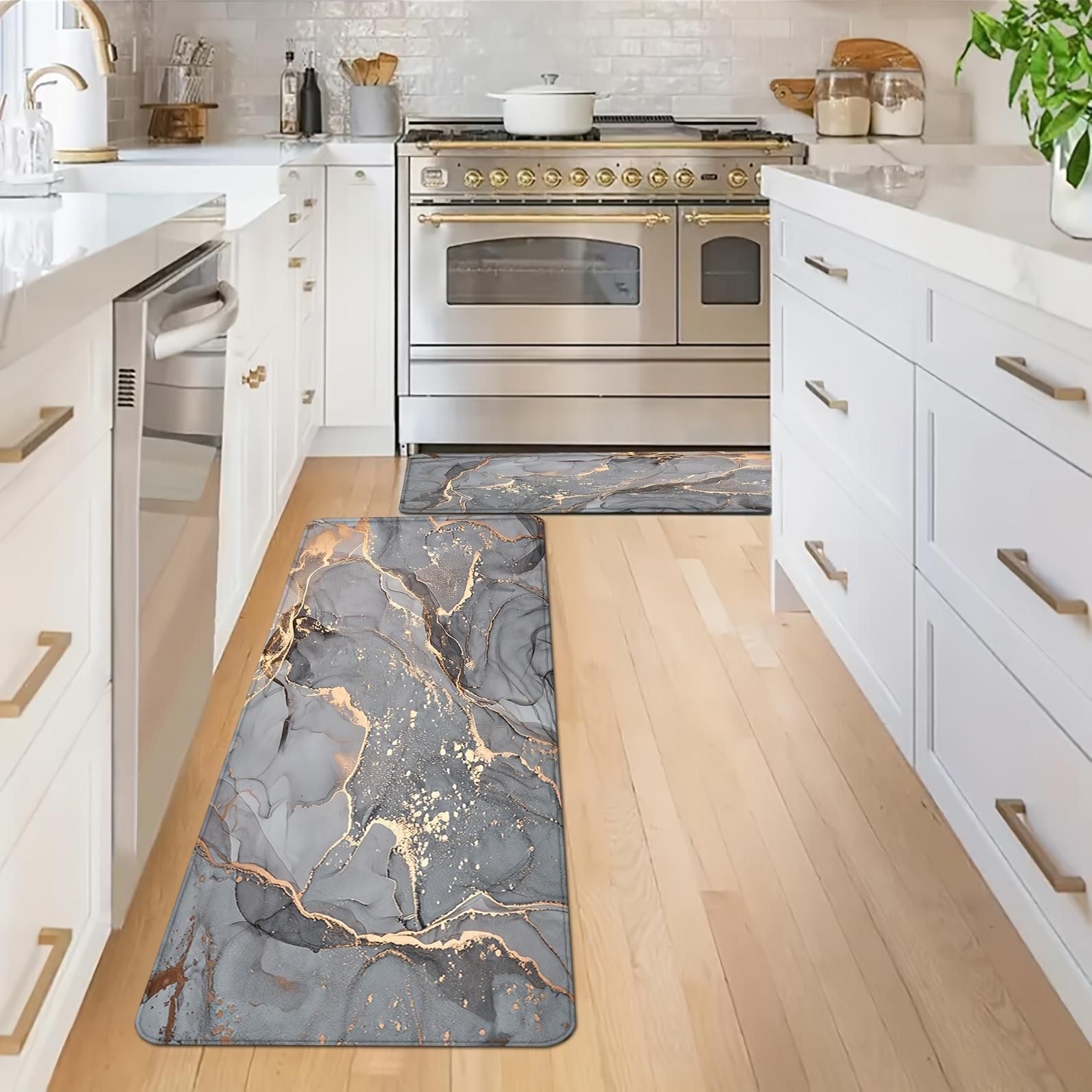 These thick cushioned antifatigue kitchen mat and runner provide ample support for your foot and knees over long periods of standing whether you are working or cooking. And features a classic pattern, which can blend with any existing home decor. This kitchen mats has a Anti-slip backing ensure the safety of you and your family. That can be used on many surface, such as marble, wood, ceramic etc. It is important to ensure that the surface is dry and flat before use!