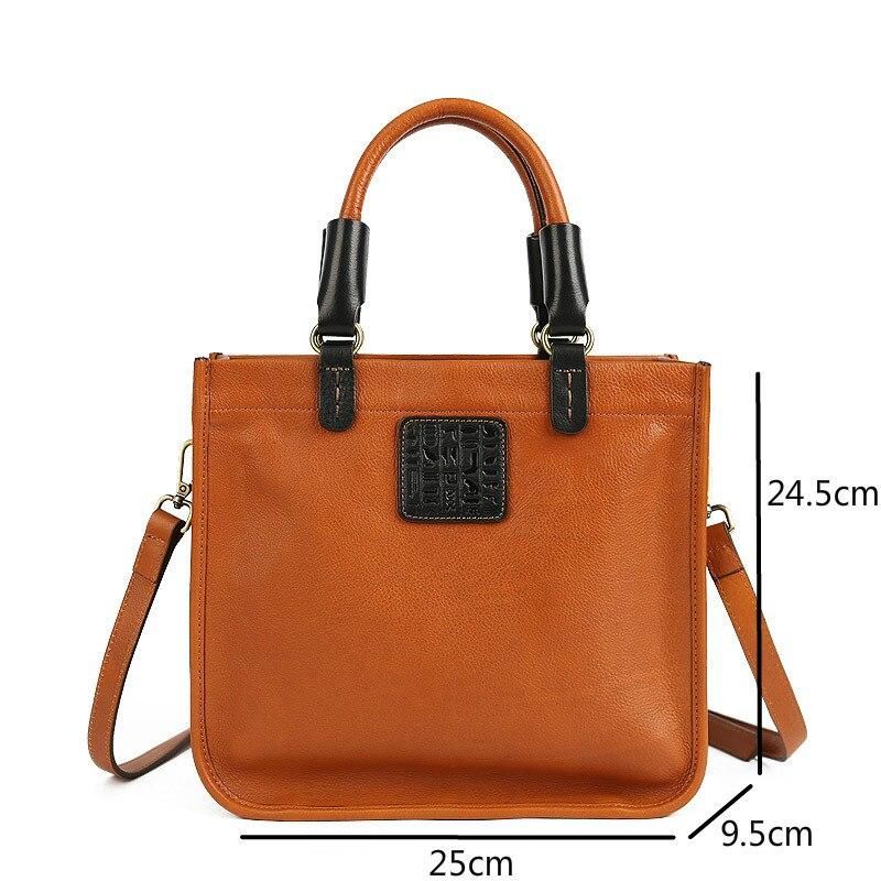 Brand Name : JohnatureBag Upper Material: Genuine LeatherShape : Casual ToteGender : WOMENOccasion : VersatileExterior : NONELining Material : PolyesterPattern Type : SolidDecoration : NONEInterior : Cell Phone PocketInterior : Interior Zipper PocketHardness : SOFTStyle : vintageClosure Type : zipperSize: One SizeLength:25cmWidth:9.5cmHigh:24.5cmLabel: Yes
