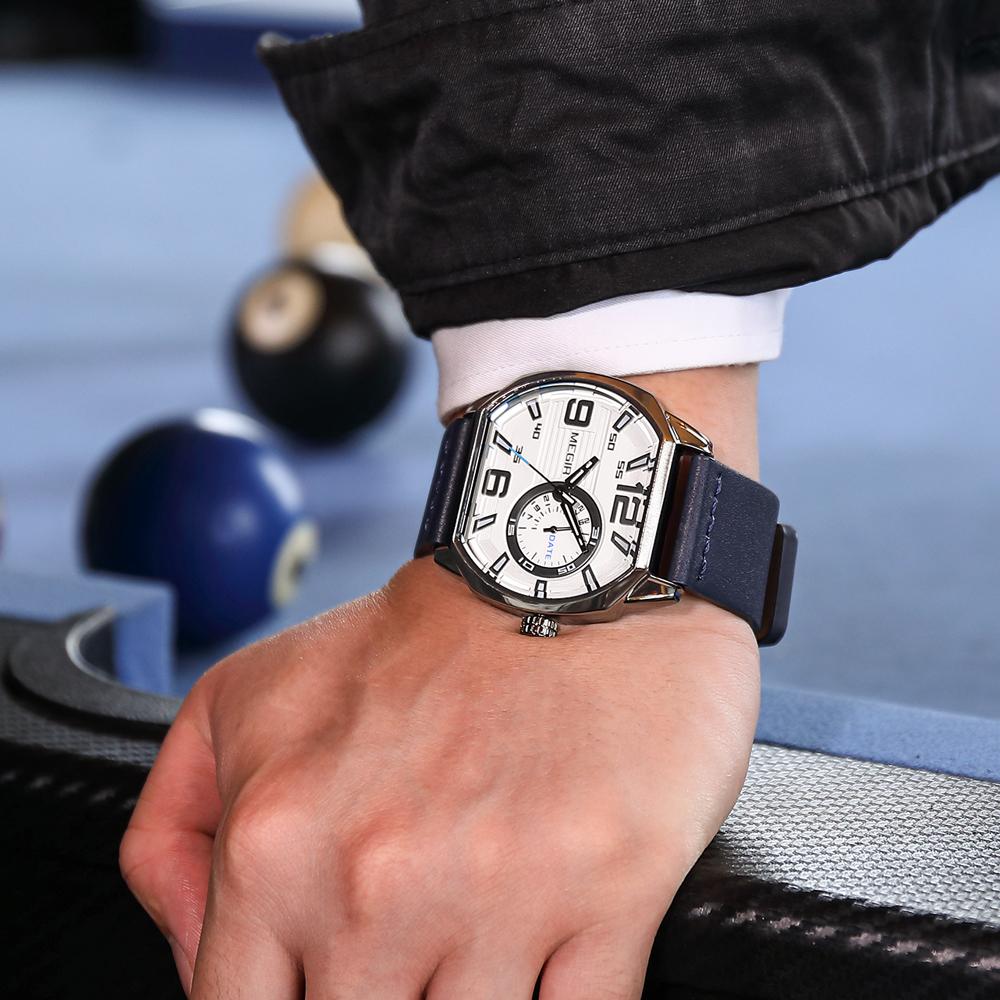Movement: Chinese QuartzCase: Zinc alloyClasp Type: BuckleDial Window: HardlexBand: LeatherSpecification:Case Size: 46.0*48.0mmCase Thickness:10mmBand Width: 24.0*24.0mmBand Wearable Length: 210mmPackage:1 x watch1 x Megir original watch box1 x English user manualPlease note:1. This watch cant be wear to swimming and take shower. And please take it away from hot and warm water.2. All the parameters are only for reference.