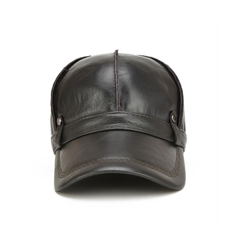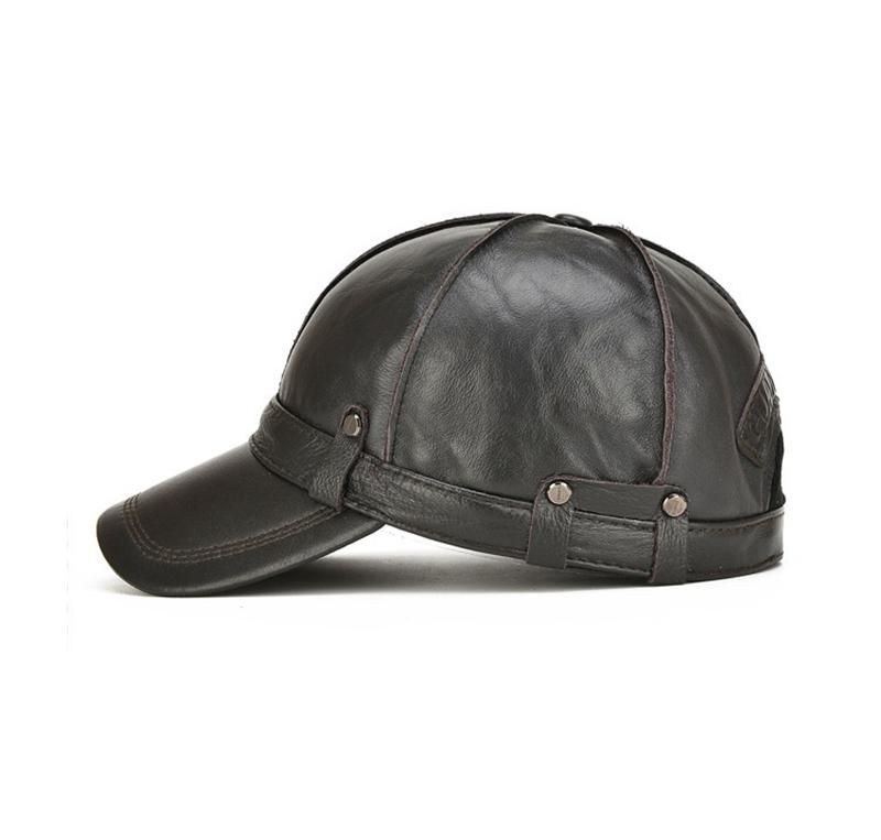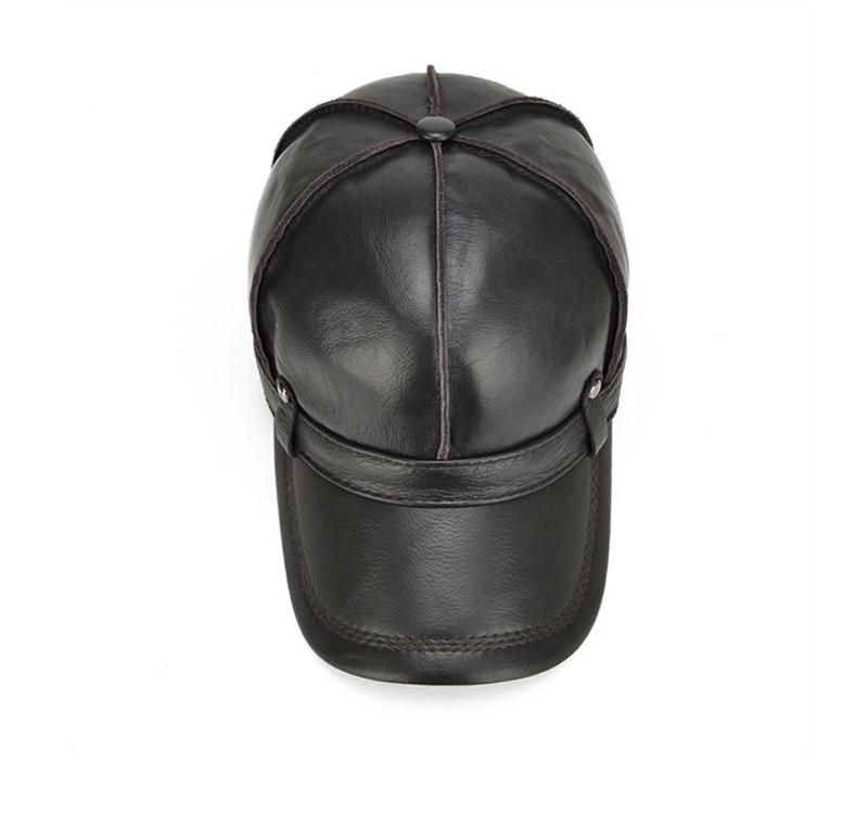 Mens Cowhide Genuine Leather Baseball Cap