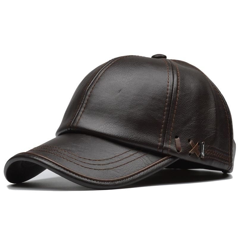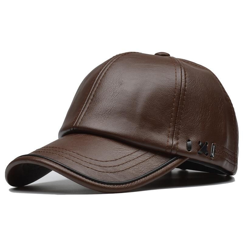 Mens Pu Leather Snapback Baseball Cap