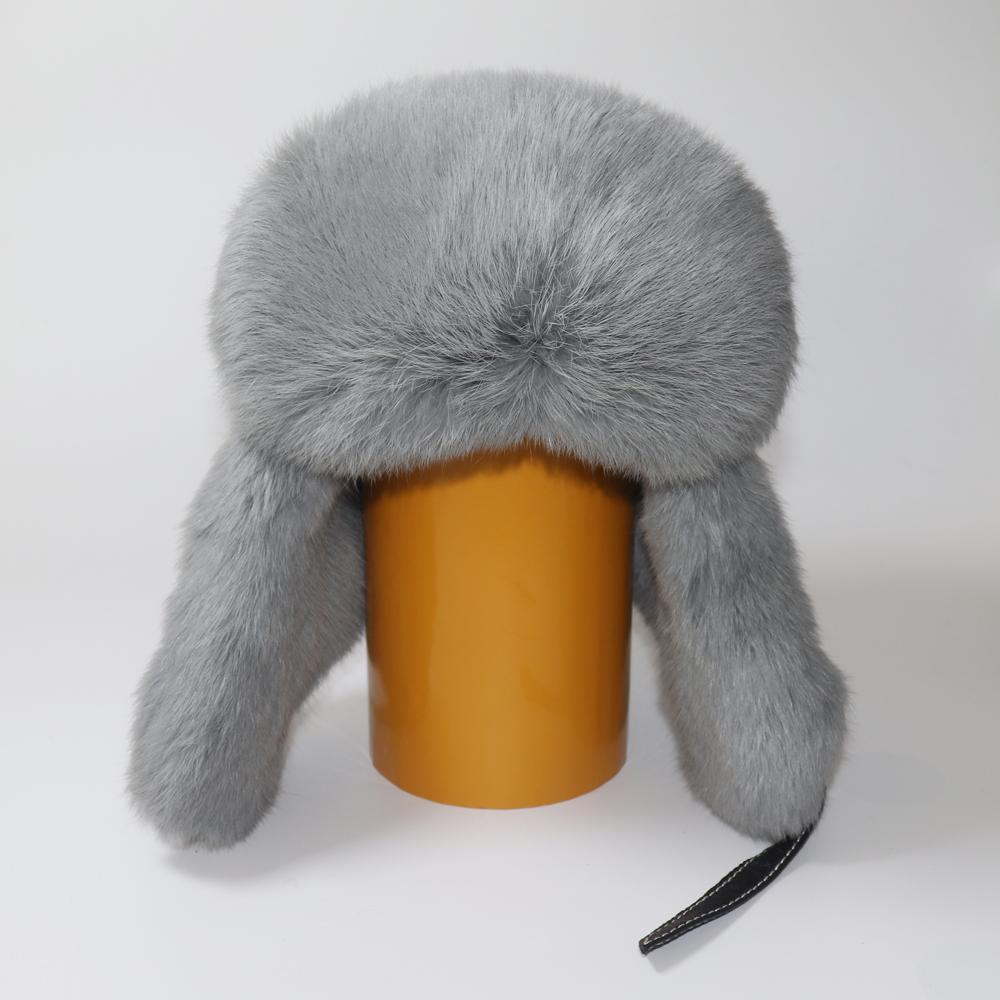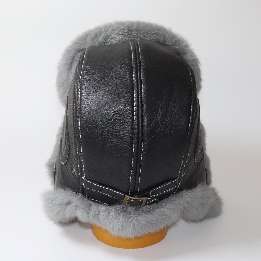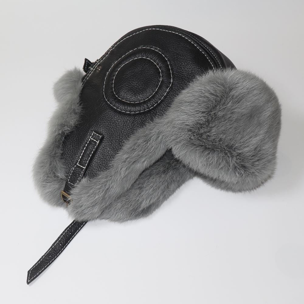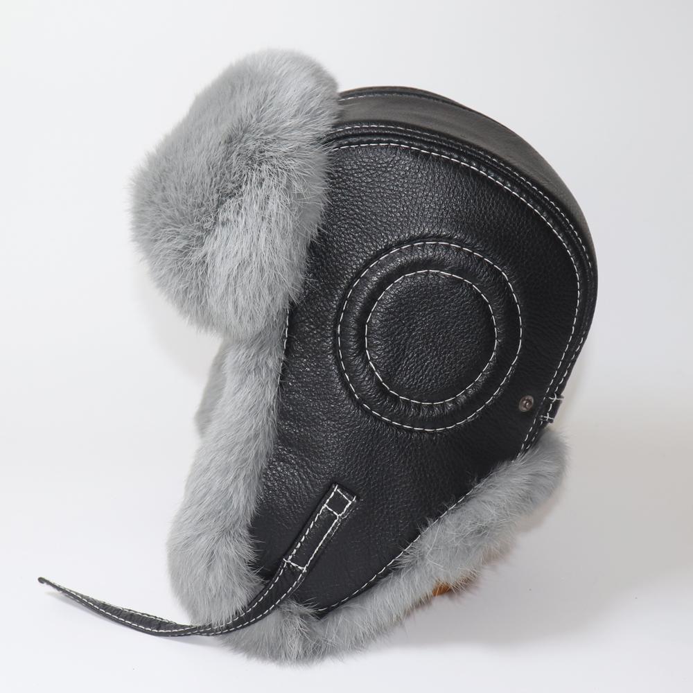Mens Warm Natural Rabbit Fur Bomber Hat