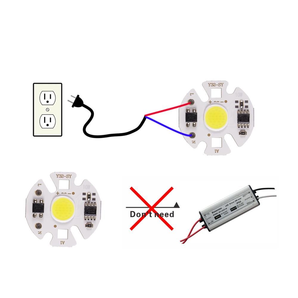 Product Name: COB LED ChipFeatures: Smart IC, not neet driverVoltage: 220V 110VWattage: 12W 10W 7W 5W 3WDiameter: 31mmLight Color: Cold White: 6000-6500K Warm White: 2800-3200KApplication: DIY Floodlight Spotlight SearchlightPackage includes1 Pcs COB LED Chip