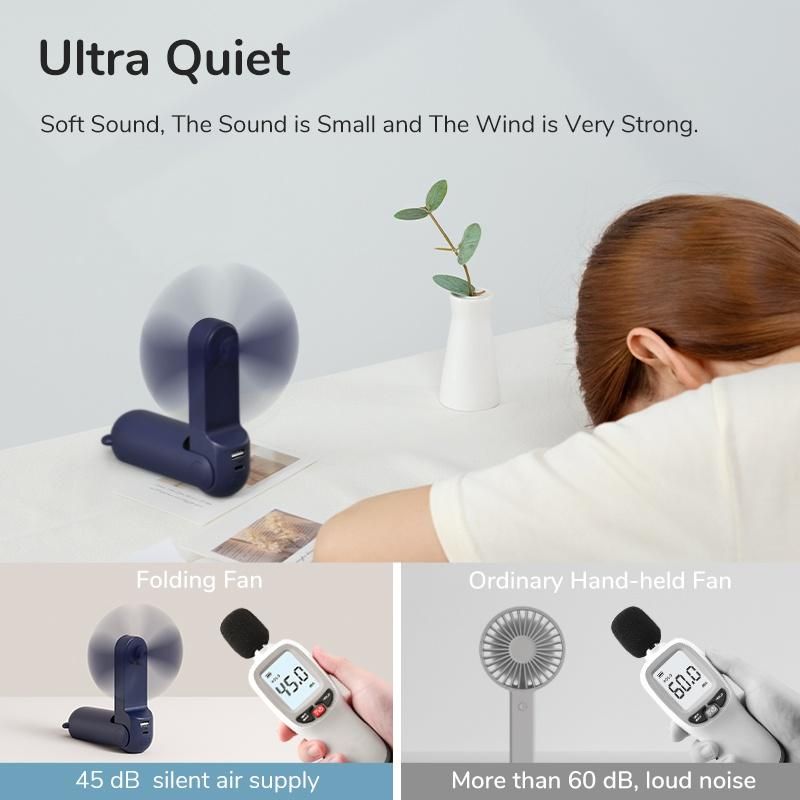 Product Name: Portable Folding Small FanPlace of Origin: CNMaterial: ABC+plasticProduct size: 35*37*108mmInput voltage: 5VInput current: 1AWeight: 129gfeature:Pocket Fan--Easy to tuck into a bag to carry with you for optimal cooling.A palm-sized spare charger - an external spare power bank to charge your phone when necessary.EXTREME BATTERY LIFE - Provides up to 6 to 12 hours of cooldown on a full charge. It can make you enjoy the whole day.2-Stage Deformable Fan - Infinite Possibilities to Transform and Bend. It can be your favorite handheld fan or a mini desk fan.USB Rechargeable -- It can be USB charged from a regular USB outlet, laptop, power bank or car charger.The package includes:1 foldable fan1 charging cable