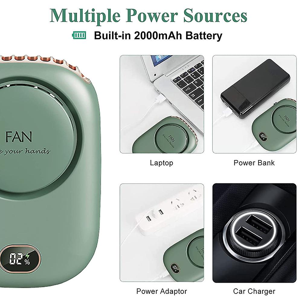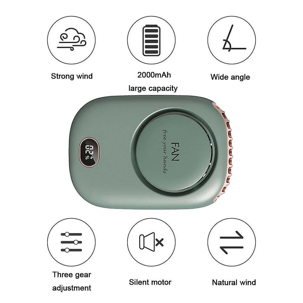 Material: ABSSize: 83*123*43mmColor: white, pink, greenQuantity: 1 piecePackage Contents: 1*Fan1.WHY CHOOSE: The portable neck fan can truly free your hands, and enjoy the cool wind anytime, anywhere . Best friend for work, office, reading, sports, travel, hiking, cycling, etc. It is also a good choice as gifts for family and friends.2.With Adjustable LanyardThe personal neck fan with adjustable lanyard, can hang on the neck , hands free and easy to adjust the length. The mini fan also designed with bracket, so can put on the tabletop, also convenient hang on the waist if need. Let you enjoy the cool and stylish.3.Wide angle air outletThe new design portable neck fan , large angle of air supply, the wind can be blown far and near.4.USB Rechargeable & 3 Speed WindUSB rechargeable neck fan, convenient to charge via computer, cell phone charger, power bank, laptops etc.