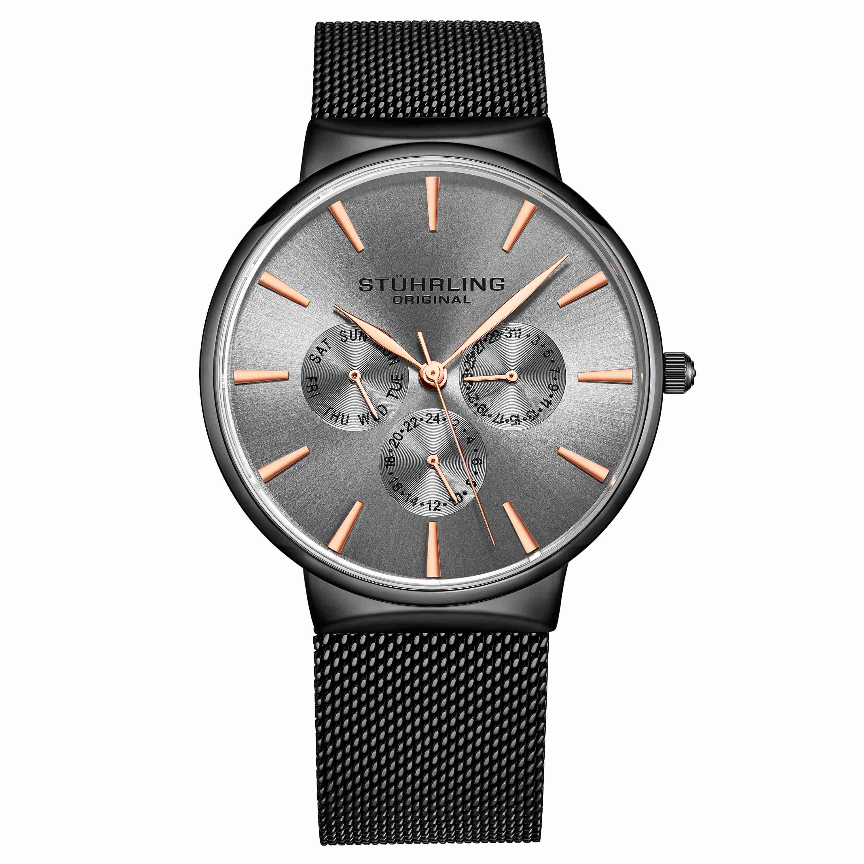Men's Quartz Multi-Function Gunmetal Grey Case, Gunmetal Grey Dial, Gunmetal Grey Mesh Bracelet Watch