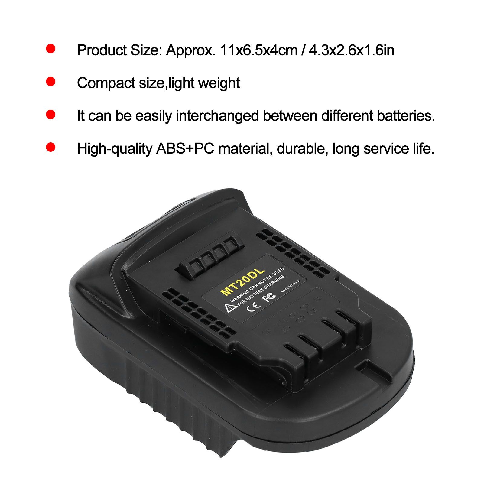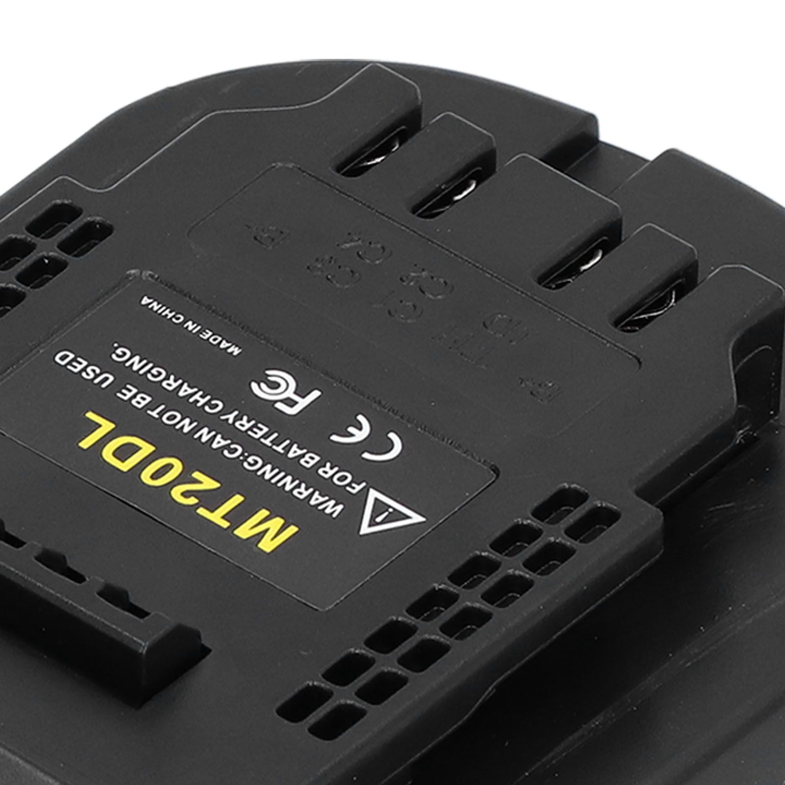1Suitable for MAKITA 18V lithium battery BL1830 BL1830 BL1850 BL1860 BL1830B BL1840B BL1850B BL1860B+MT20DL adapter. 2The product is small in size and light in weight, and can be easily interchanged between different batteries. 3Replacement for 20V lithium battery DCB200 DCB201 DCB203 DCB204 DCB205 DCB206, can be used on power tools. 4If you want to use a more environmentally friendly lithium battery for your nickel battery tools at home, you don't need to spend a lot of money to buy an electric drill. 5Easy to install, the top of the adapter is connected to power tool, and the bottom is connected to a 20V lithium battery.