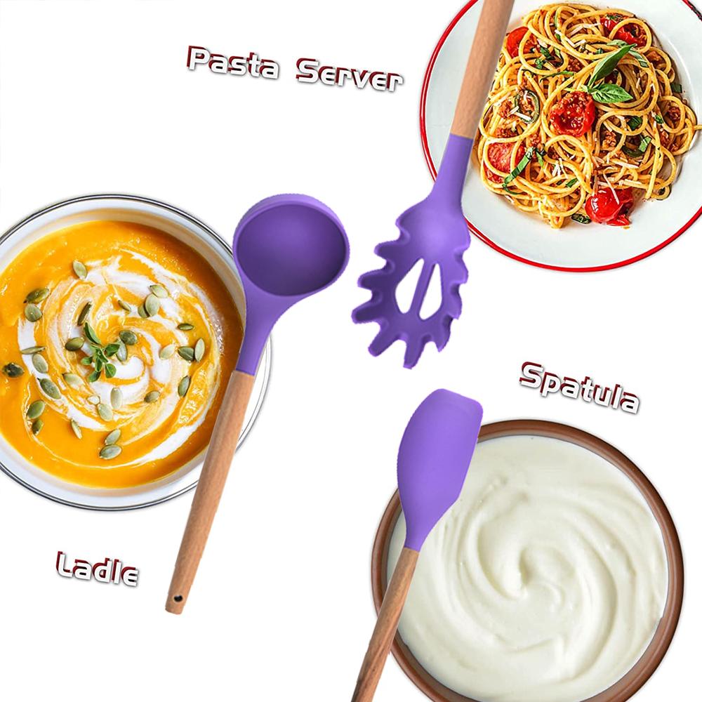 2. Non-Stick and Easy to Clean: The non-stick surface makes cleaning a breeze, and the silicone and wood construction enhances usability.
