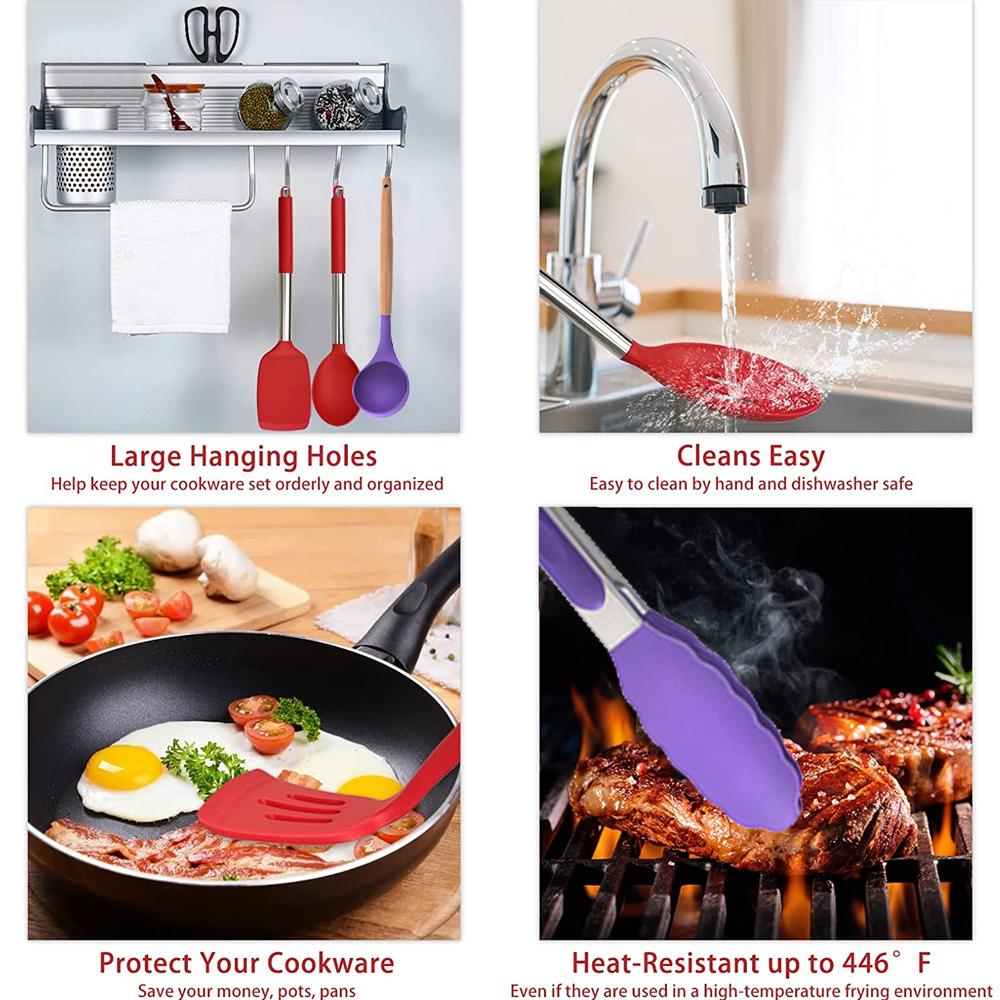 4. Convenient Storage and Hanging: Comes with a utensil pot for organized storage, and the handles have a small hole for easy hanging.