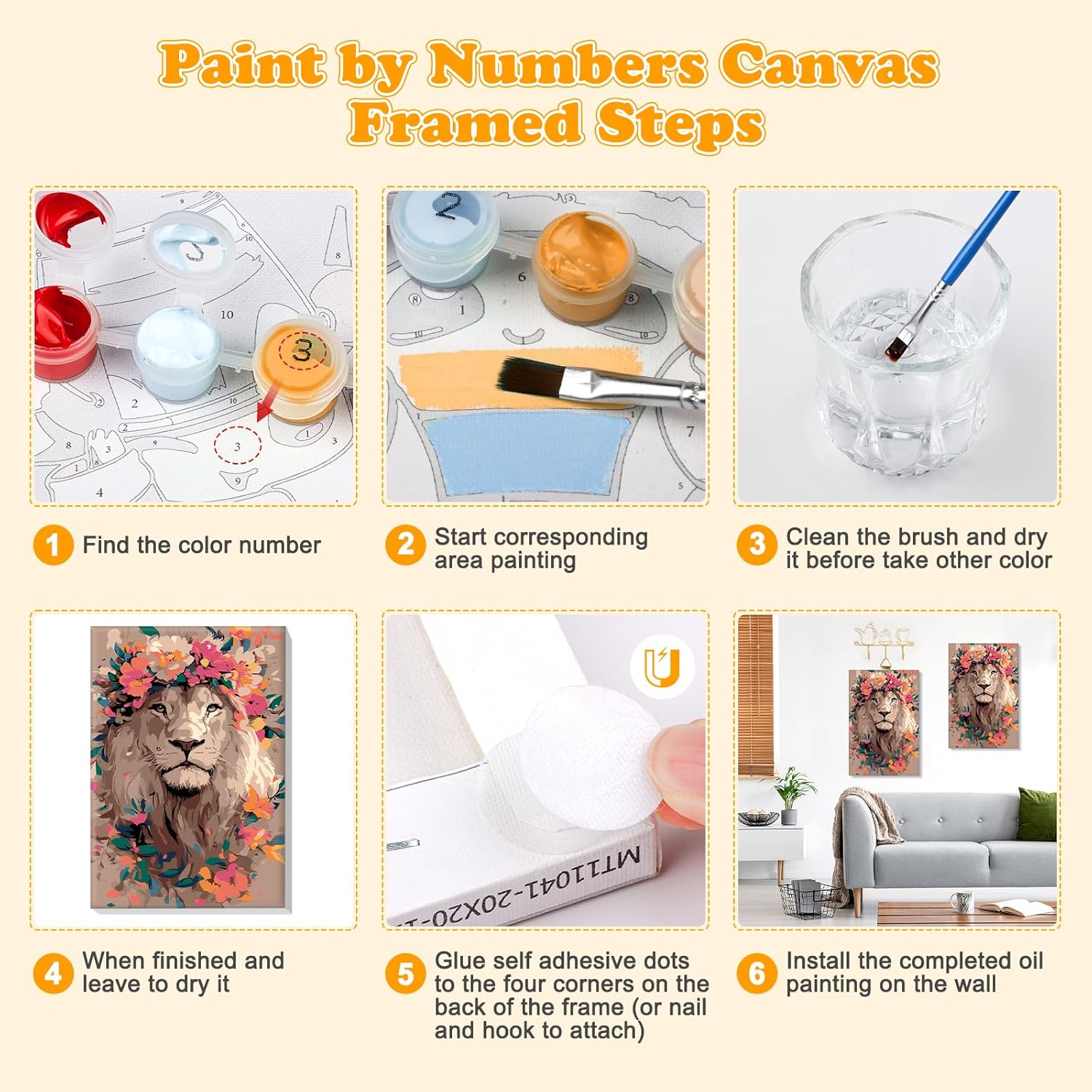 EASY TO PAINT : Our canvas oil painting is easy to use. You only match the numbers of the paint and the figures on the canvas to fill in the paint. And Follow the instructions, paint by color numbers, finish one by one. Especially good for people who love to paint but are not very good doing it free hand.