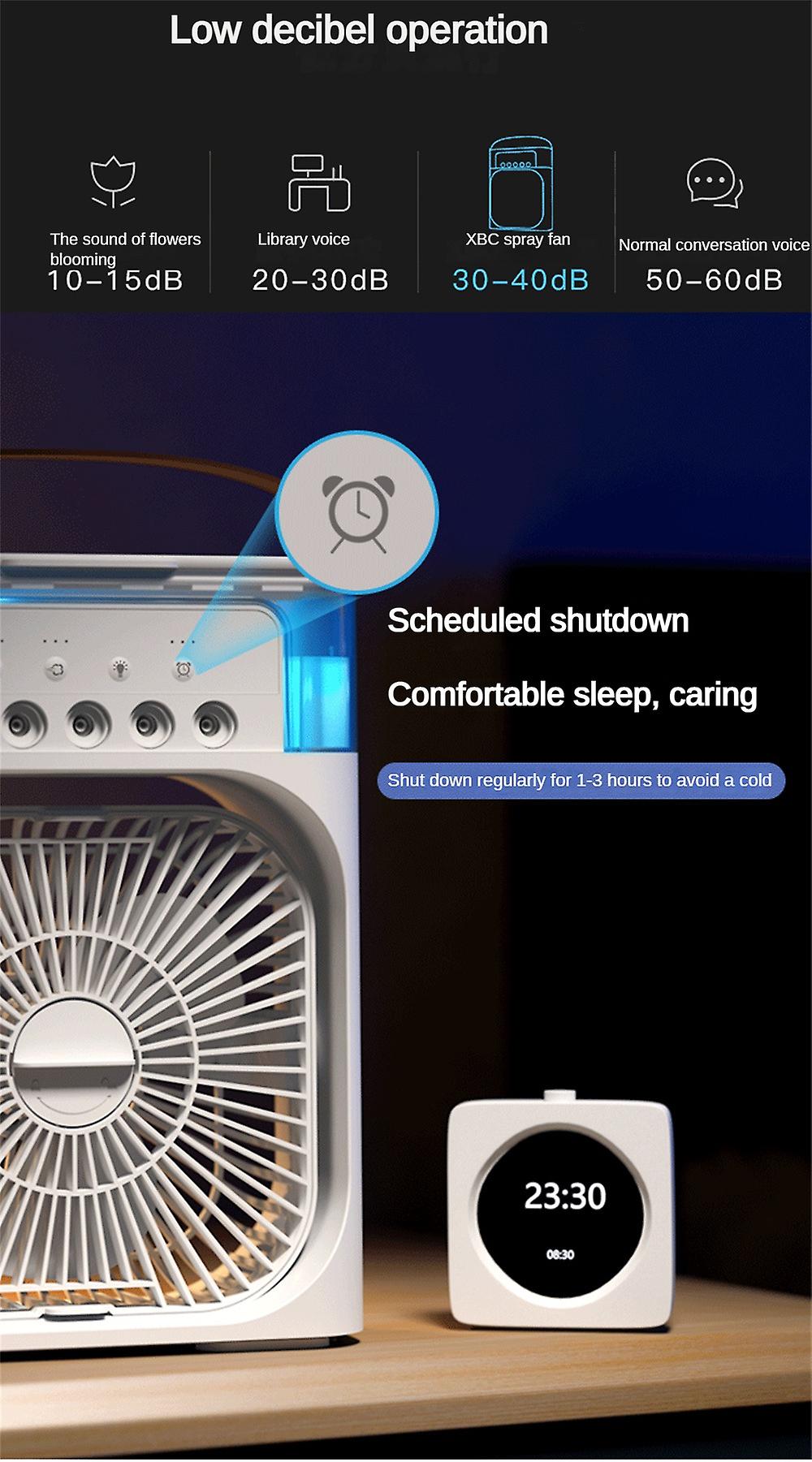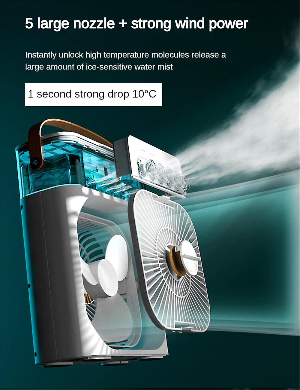 5. Portable Design, The Air Cooler Fan With Portable Design Can Be Easily Carried Anywhere. In Summer, It Is The Best Choice For Camping, You Can Camp Easily, Very Suitable For Home, Office, Outdoor Picnic And So On. The 600ML Large Water Tank Is Filled With Ice And Water, It Can Spray Cold Air For Hours To Keep Your Body Cool And Make You Happy.