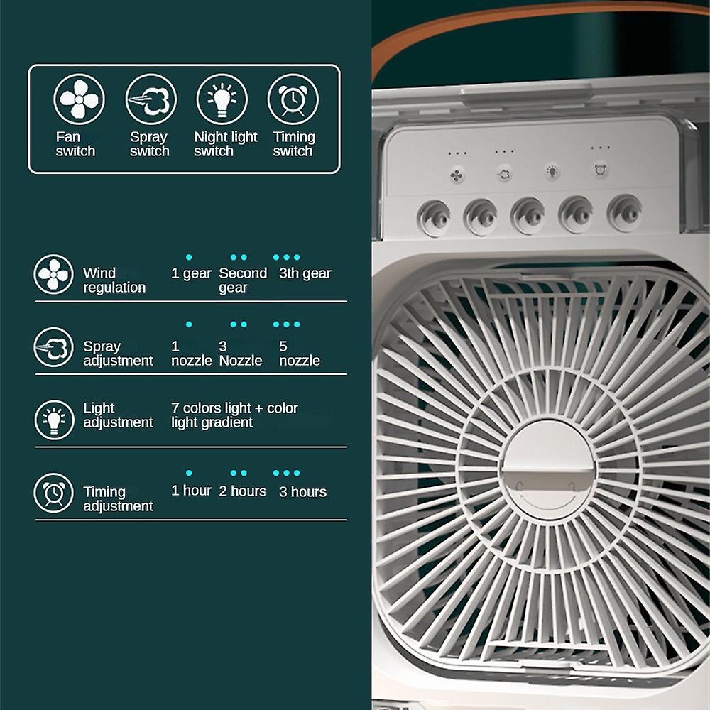 2. Spray, The Air Cooler Fan Has 3 Wind Speed Modes (low/medium/high) And 3 Spray Modes, You Can Adjust The Wind Speed And Spray Mode According To The Situation. It Is A Combination Of Personal Air Conditioner Cooler, Fan, And Air Humidifier, With A Three-in-one Multifunctional Design, Allowing You To Stay Away From The Hot Summer And Enjoy A Cool Summer.