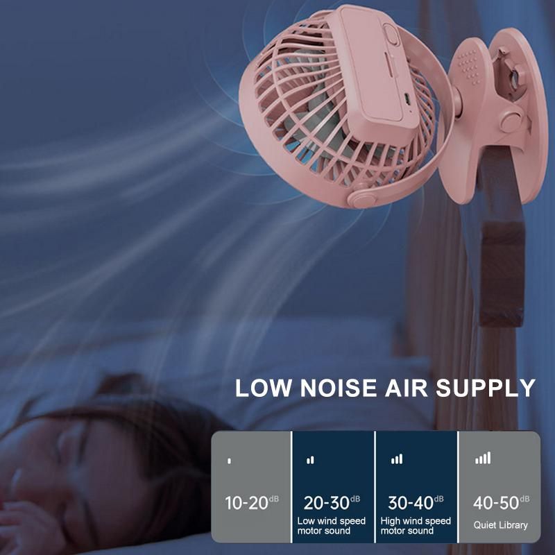 Features:2-in-1 clip-on and desktop fan is perfect for use in the office, home, dorm, study, library, game room, etc., keeping you cool and comfortable wherever you are.Compact and portable desktop fan with clip, size in about 6.49*5.63*3.26in, versatile for both standing and clipping, providing a refreshing breeze wherever you go.Brushless motor provides huge blowing area and stable speed under extremely low noise, allowing you to enjoy a peaceful and comfortable environment.The wind speed is adjustable among low, medium, high, so you can customize the airflow to suit your needs. Adjust the fan direction with 360 degrees up and down.Supports 2 power supply modes - it can be powered by a 2000mAh battery or through a USB cable, giving you the flexibility to use it both indoors and outdoors.Specifications:Material: PPInput: 5V 0.5A-1ABattery Capacity: 3.7V 2000mAhWorking Time: 2-10 hoursCharging Time: about 2.5 hoursCharging Port: Micro USBPower: Max. 5WRotation Speed: 4500RPMColor: White, Pink, Green, Blue (Optional)Item Size: approx. 16.5*14.3*8.3cm/6.49*5.63*3.26inPackage Size: 17.0*14.5*8.5cm/6.69*5.70*3.34inPackage Weight: 168g/5.92ozPackage List:1 * Desktop Fan1 * USB Cable1 * Battery